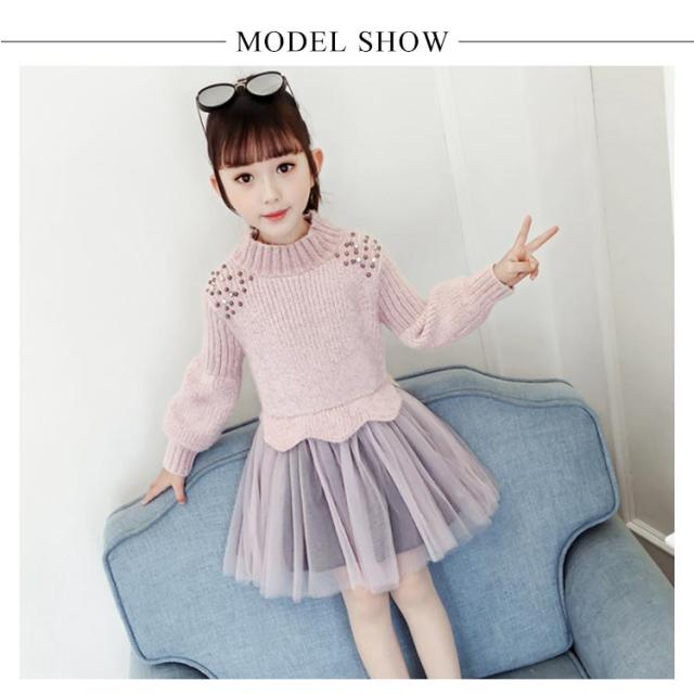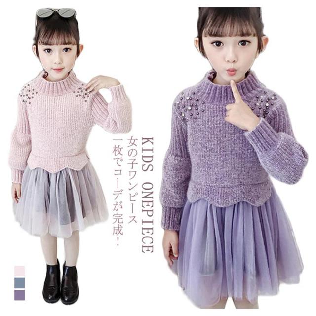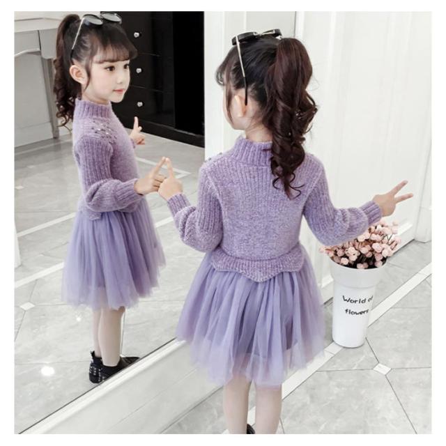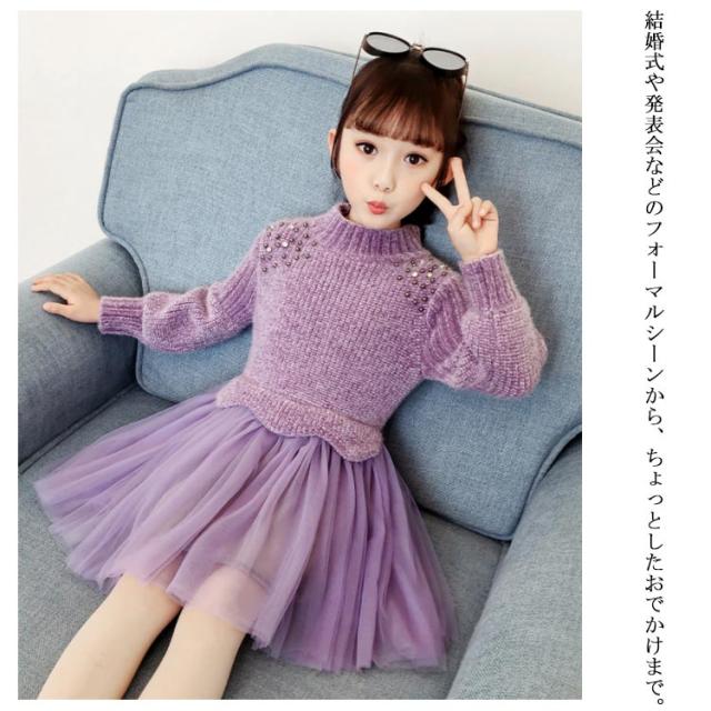 | 女の子の気分を上げてくれるフェミニンなドッキングワンピース。一枚でコーデが完成! ニットトップスとチュールスカートを合わせているかのようなドッキングデザインのワンピース。 上品な印象なので発表会や結婚式など華やかなシーンにもぴったりです☆ | |