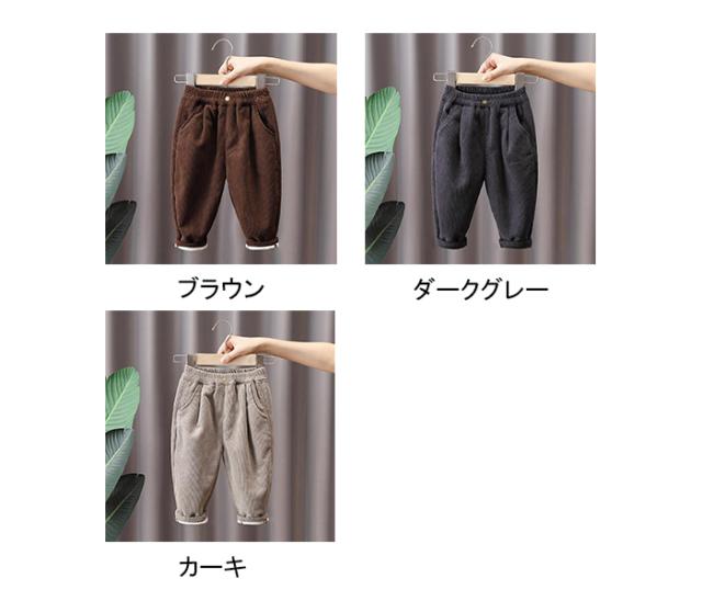 子供服 男の子 裏起毛 コーデュロイ パンツ ロングパンツ 長ズボン サルエル 無地 冬服 秋冬 厚手 保温 防寒 ズボン カーキ ダークグレー ブラウン 45 90 100 110 120 130