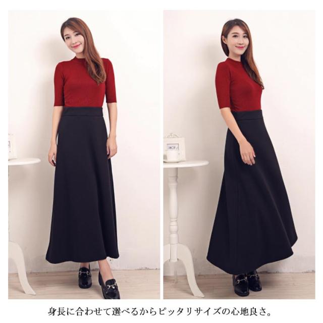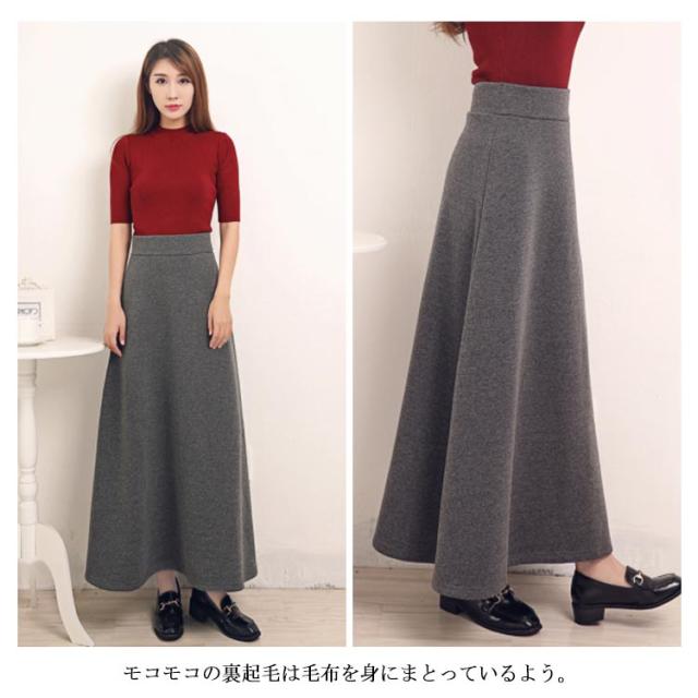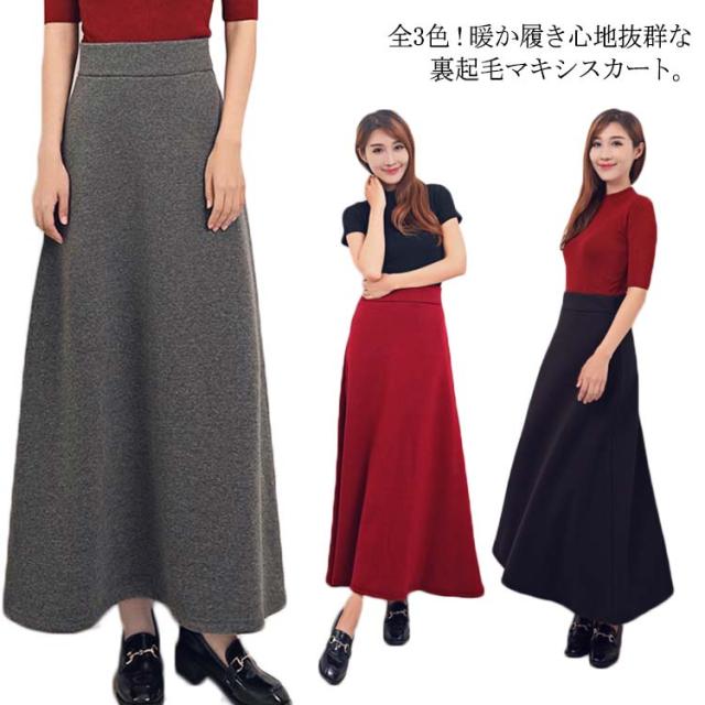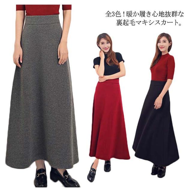 スカート ロング丈 ハイウエスト Aライン 裏起毛 レディース ロングスカート ウエストゴム 着痩せ 可愛い 無地 ゆったり 韓国ファッション お洒落 送料無料