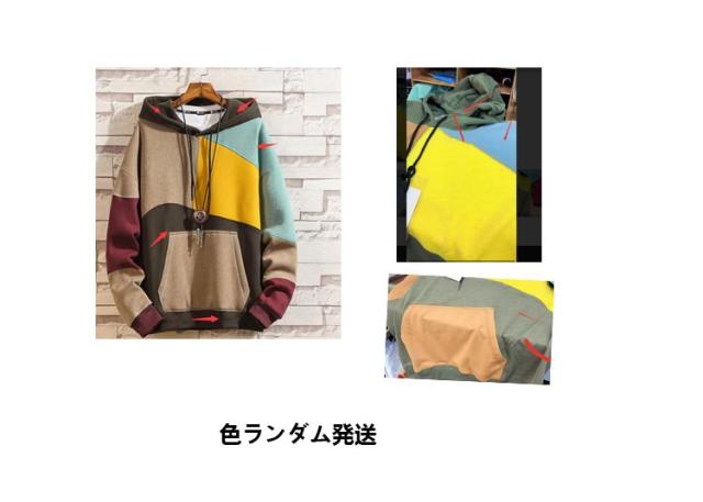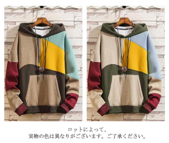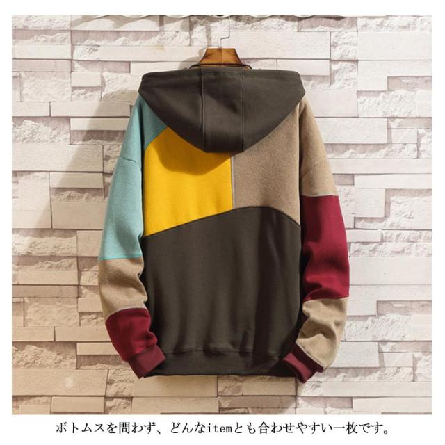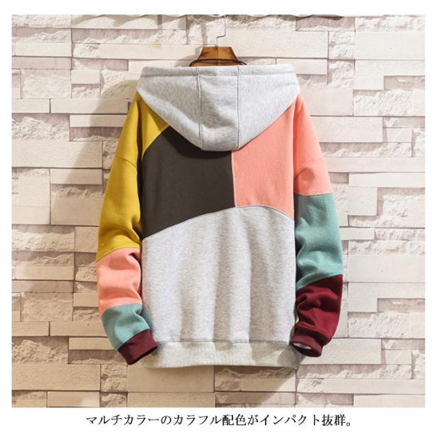 M-5XLサイズ!マルチカラーパーカー パーカー メンズ フード付き プルオーバーパーカー メンズパーカー カラフル 配色 トップス 春 秋 大きサイズ おしゃれ