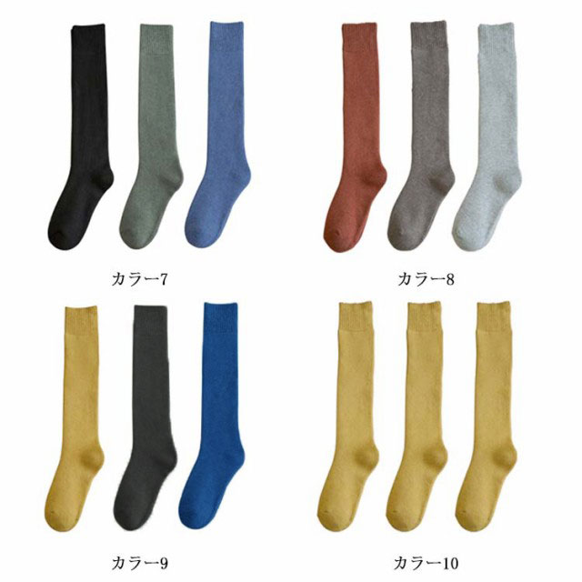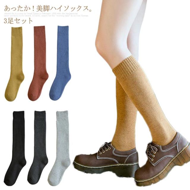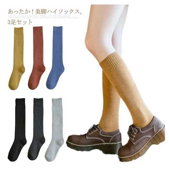 3足セット レディース ハイソックス 厚手 パイル ソックス ロング丈 無地 暖かい もこもこ スクールソックス 防寒 保温効果抜群 あったか ソックス 裏側パイル 冷え対策 秋 冬 通勤 通学