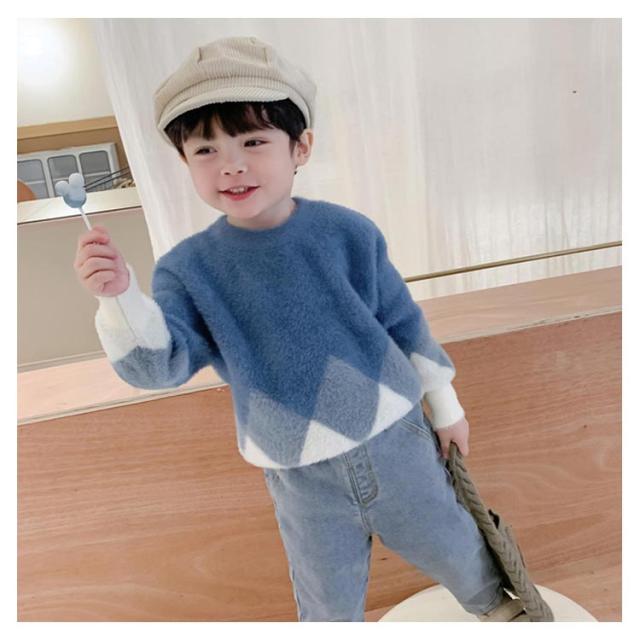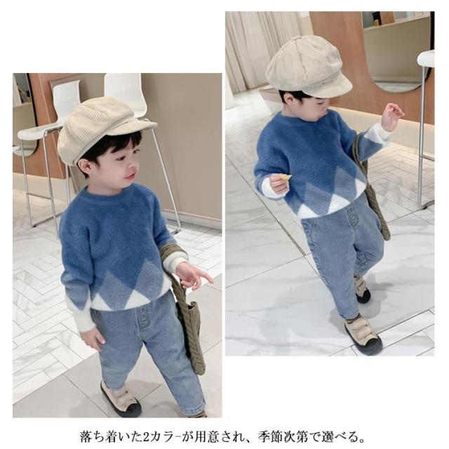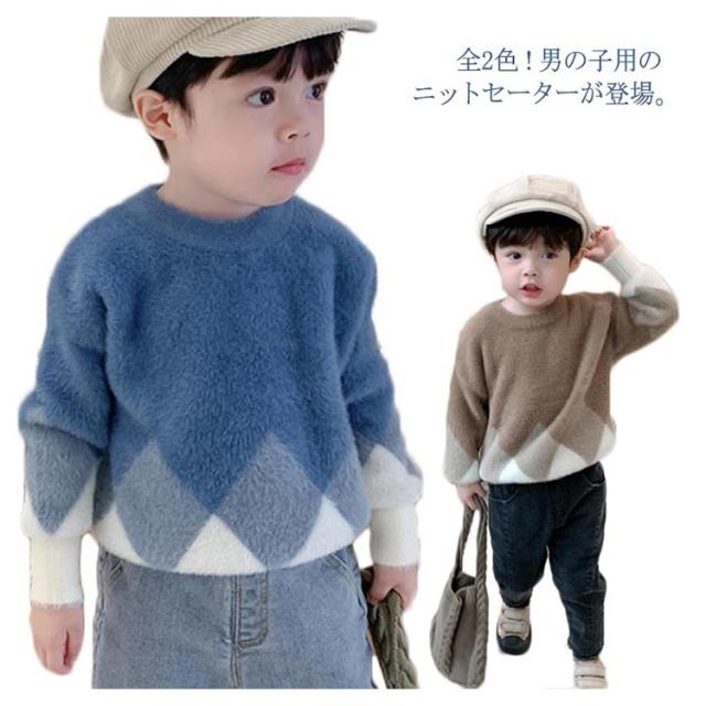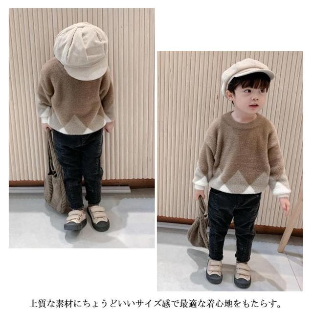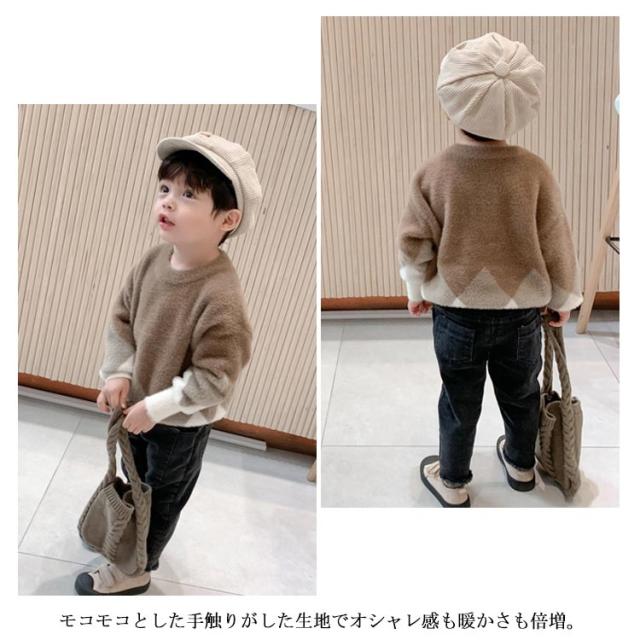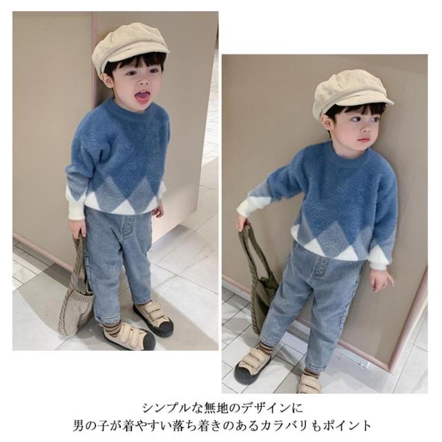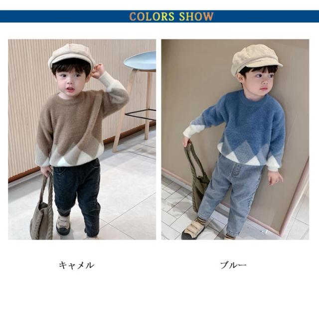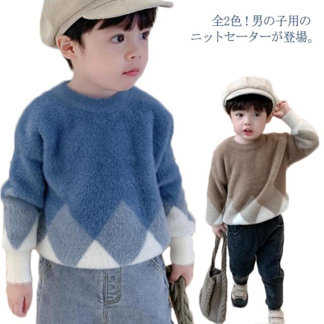 ニットセーター 男の子 子供服 モコモコ セーター トップス ラウンドネック キッズ服 長袖 ジュニア 冬物 お洒落 80cm 90cm 100cm 110cm 120cm 130cm 送料無料