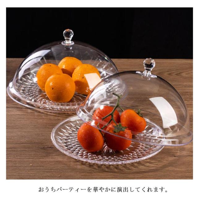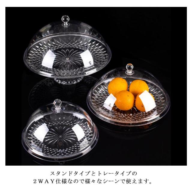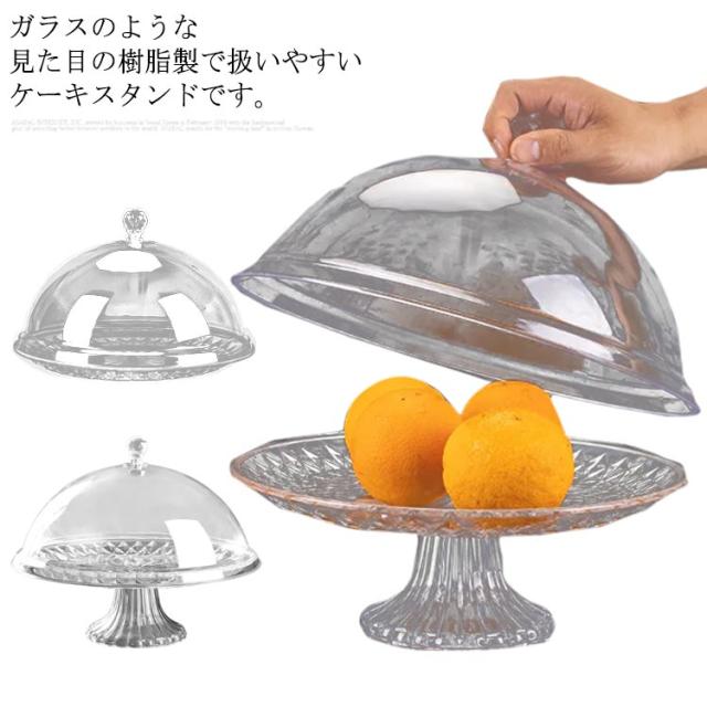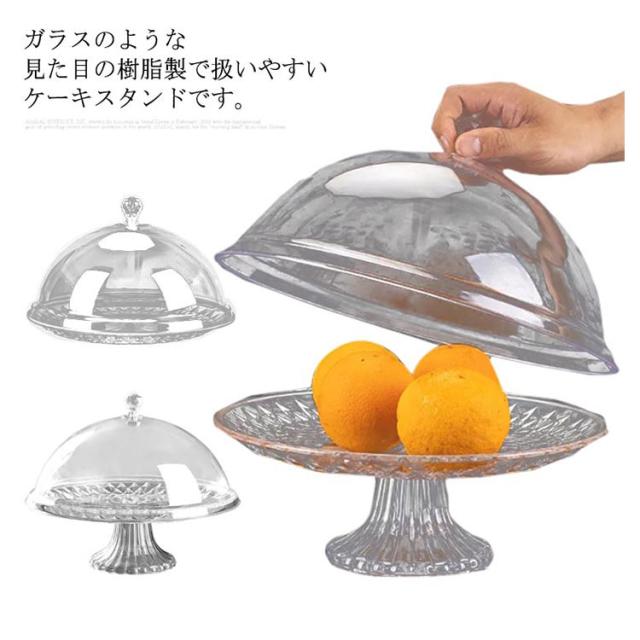 蓋つき 1段 直径20cm/25cm ケーキスタンド 蓋付 台付き 大 デザート 北欧 トレー 割れないガラス ケーキトレー アクリル製 クリア おしゃれ 直径20cm/25cm フルーツ ディスプレイ 製菓 キッチン スタンド