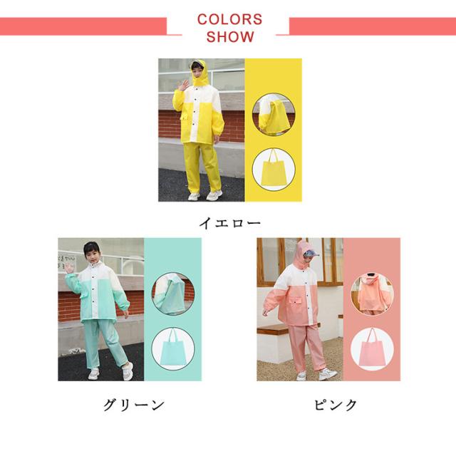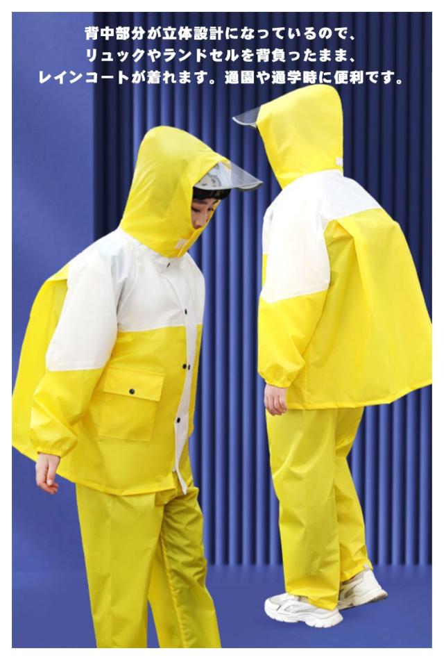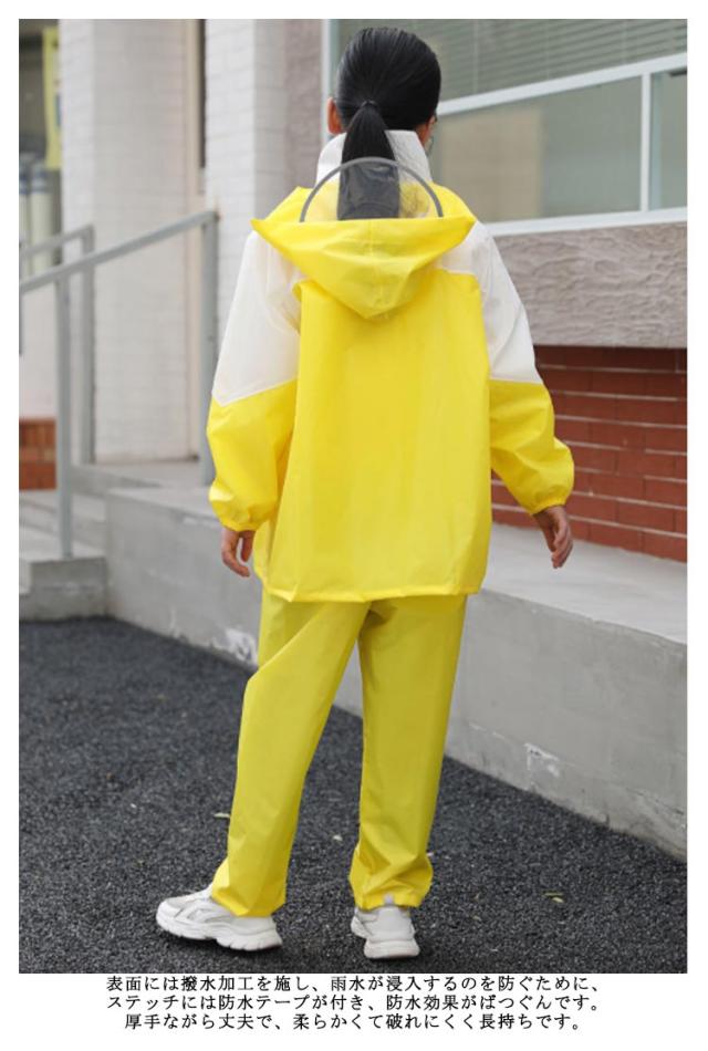 | 【生地】防水性、耐摩耗性に優しいポリエステル素材を採用し、無臭で味がなく、着心地が良くて、肌に刺激を与えません。表面には撥水加工を施し、雨水が浸入するのを防ぐために、ステッチには防水テープが付き、防水効果がばつぐんです。厚手ながら丈夫で、柔らかくて破れにくく長持ちです。 【安心の上下セット】通気口があり、ウェア内の蒸れや熱気を外に放出します。 左右のポケットは雨が侵入しないよう上蓋のついたポケットになっています。レインパンツはウエスト部分をゴムで調整ができます。 【大きいツバと大きいポケット】?大きいツバ:レインウエアは大きいツバのデザインなので、大雨の場合で、顔が濡れにくい。 ?防水ポケット:側面に大きなポケットが増え、物収納が便利です。 【リュック対応で便利】背中部分が立体設計になっているので、リュックやランドセルを背負ったまま、レインコートが着れます。通園や通学時に便利です。 【色んな場で活躍】雨の日の保育園や幼稚園、小学校への通学にぴったり!おしゃれでシンプルさを追求した、男の子にも女の子にも似合う、色鮮やかでかわいいレインコートです。 | |