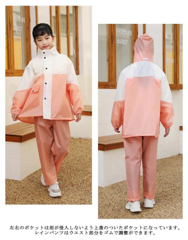 上下セット セットアップ 反射テープ アウトドア レインパンツ レインウェア 女の子 ズボン レインスーツ 撥水 セットアップ ランドセル対応 キッズ 子供用 男の子 送料無料 林間学校 雨具 通学 自転車 かっぱ 110 120 130 140 レインコート