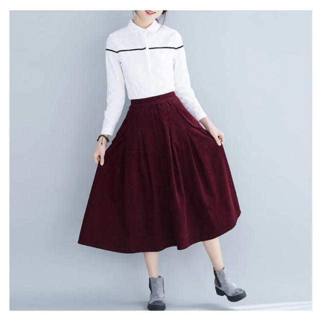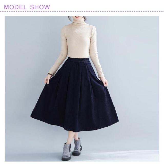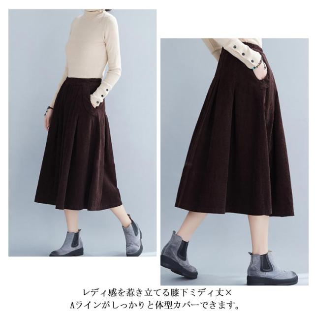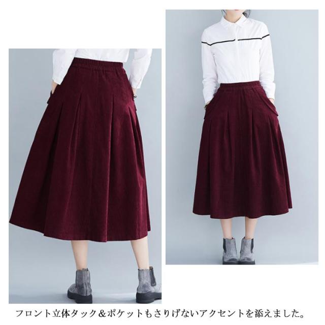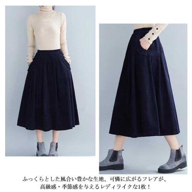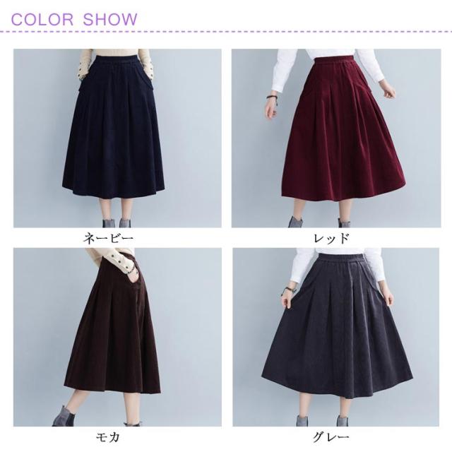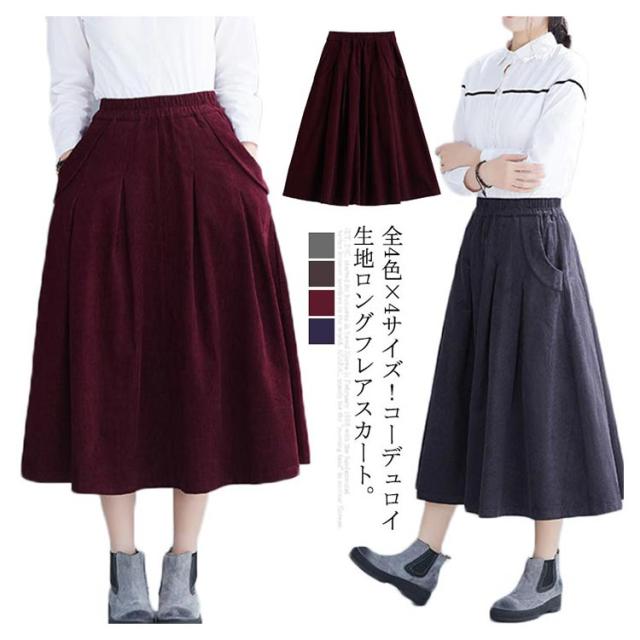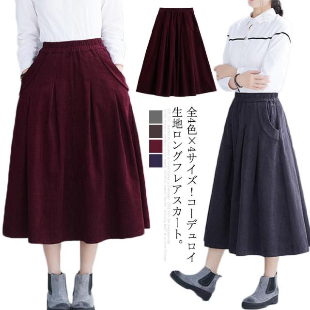 全4色×4サイズ!スカート コーデュロイ フレアスカート フレアロングスカート Aライン ロングスカート ミモレ丈 ハイウエスト コットン 綿 厚手 秋服 冬服 秋冬物