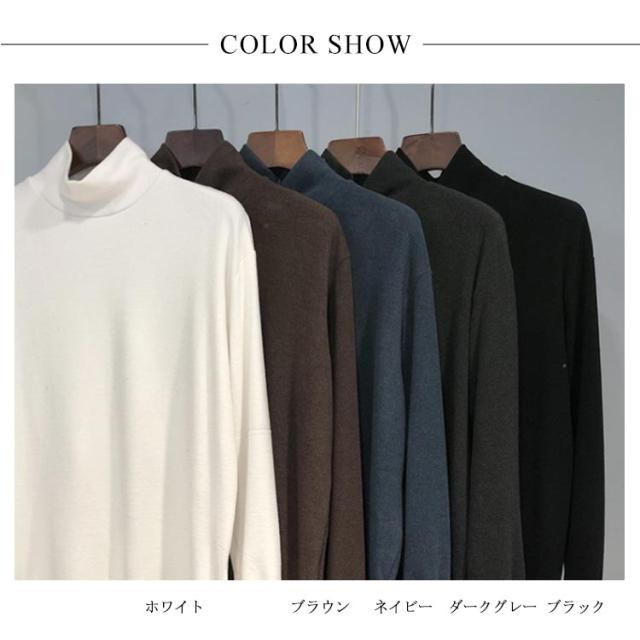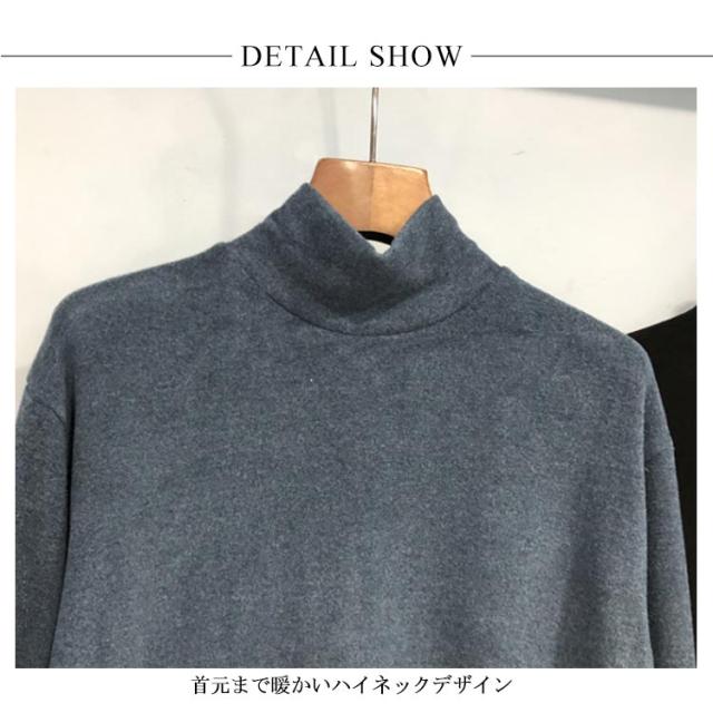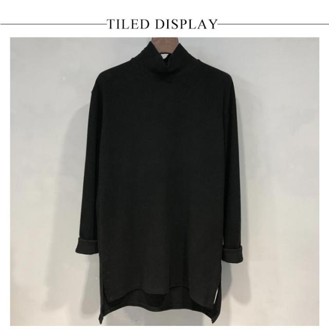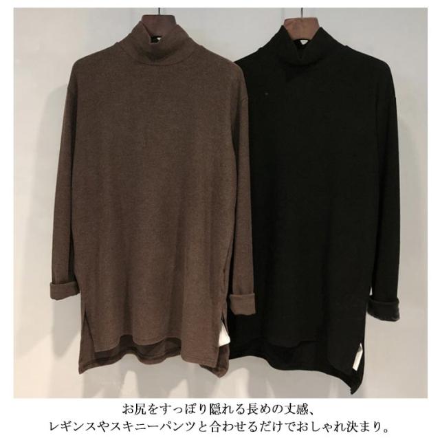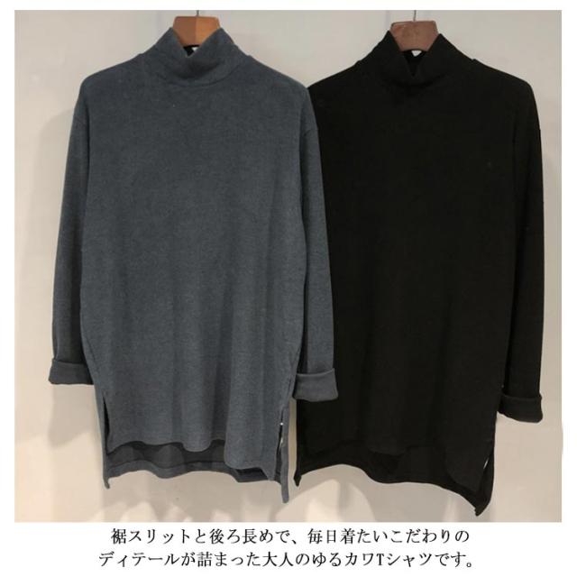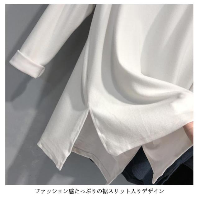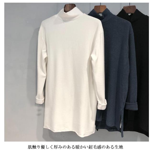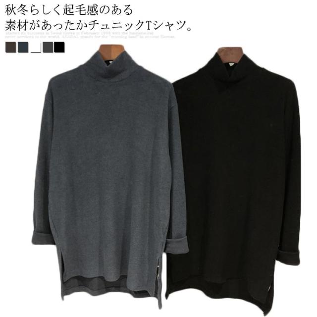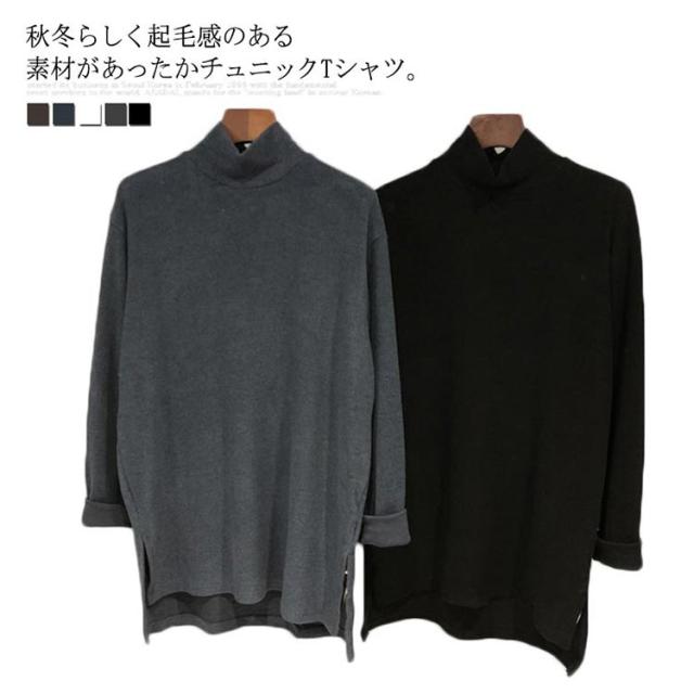 ロングTシャツ カットソー ゆったり レディース 無地 トップス 長袖 起毛感 Tシャツ ハイネック 長袖Tシャツ ゆる チュニック シンプル スリット入り 後長め 体型カバー 着痩せ インナー シャツ 秋冬 新作