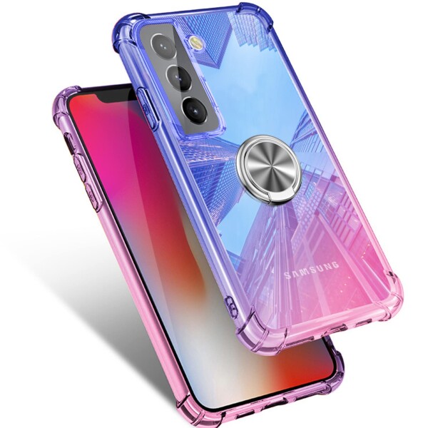 Galaxy S21 ケース リング付き クリア SCG09 SC-51B耐衝撃 薄型 グラデーション 透明 TPUバンパー 車載ホルダー対応 スタンド機能 薄型 軽量 取り出し易い 全面保護 カバー 光学メッキ加工 おし