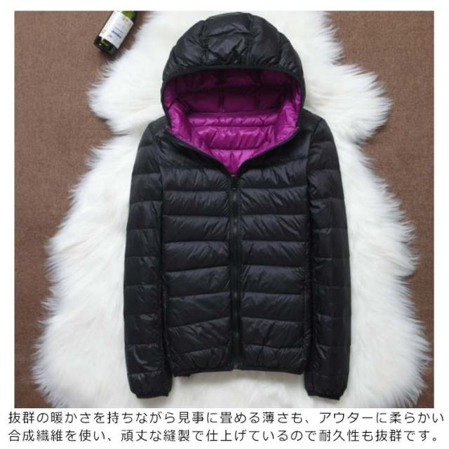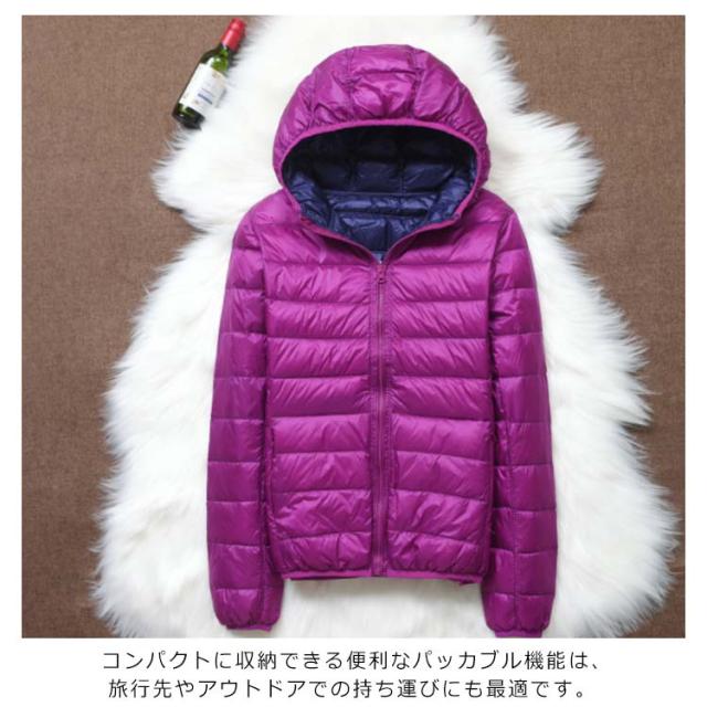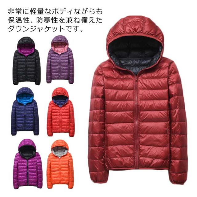 ダウンジャケット フード付き レディース 軽量 ショート 軽量 防風 防寒 ダウン コート ライトダウン 暖かい コンパクト収納 無地 新作