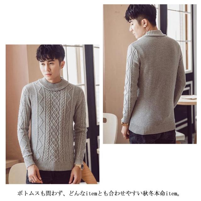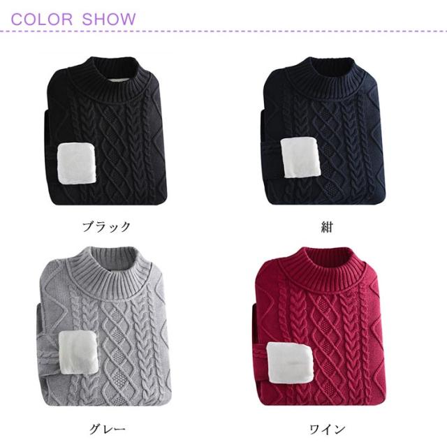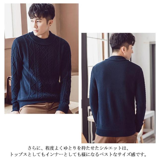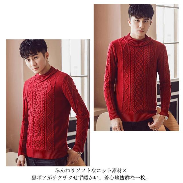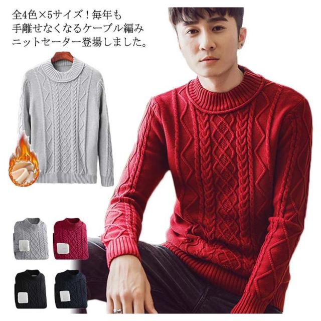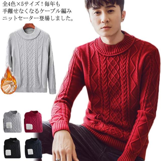 全4色×5サイズ!ニットセーター メンズ ケーブルニット ニット セーター プルオーバー 裏ボアニット 長袖 ケーブル編み 厚手 防寒物 秋冬 冬服 冬物 大きサイズ