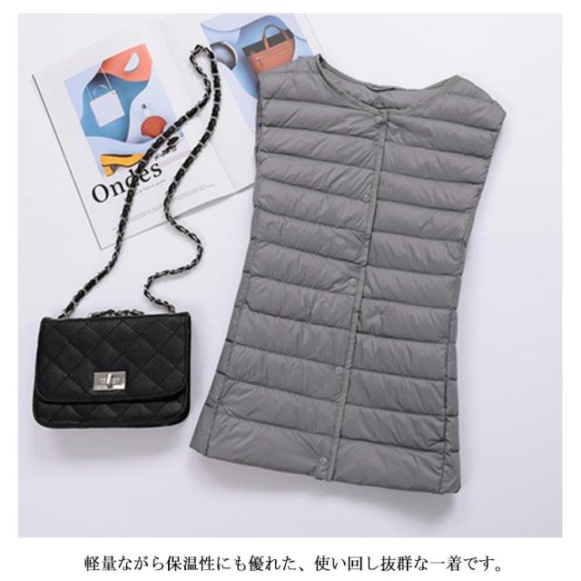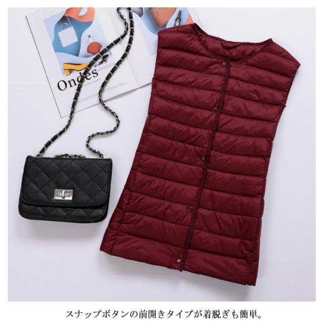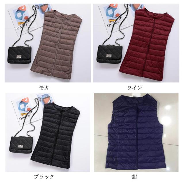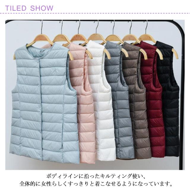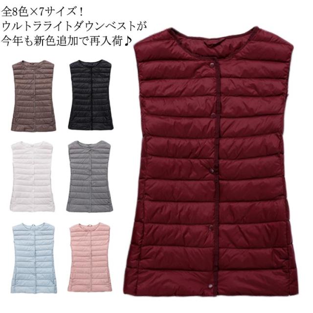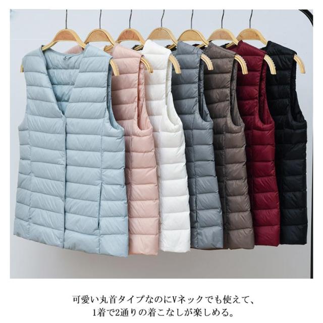全8色×7サイズ!クルーネックベスト ダウンベスト レディース インナーベスト インナー ジャケット ベスト 軽量 軽い 丸首 前開き 秋 秋冬 おしゃれ 可愛い