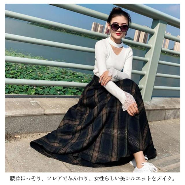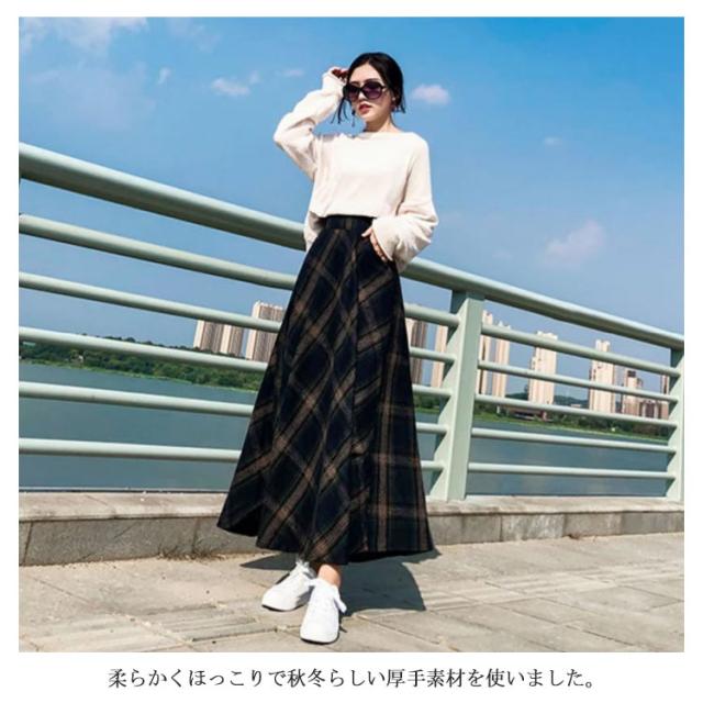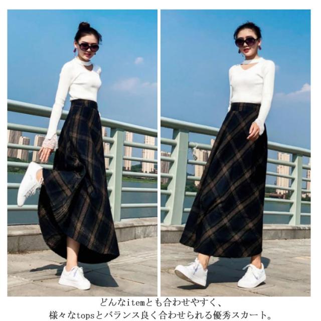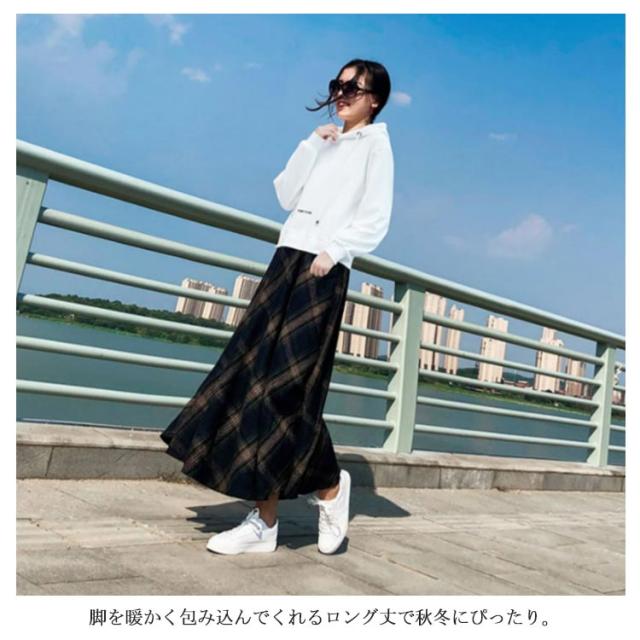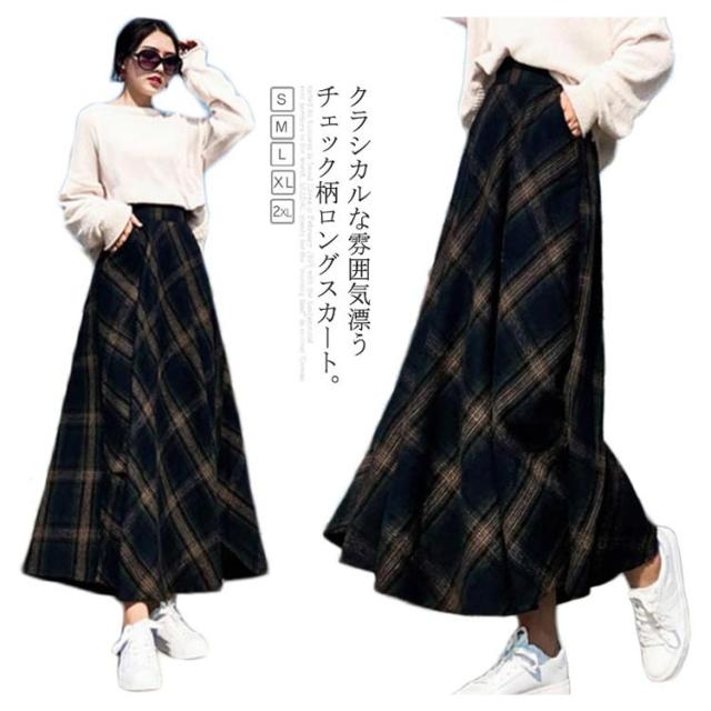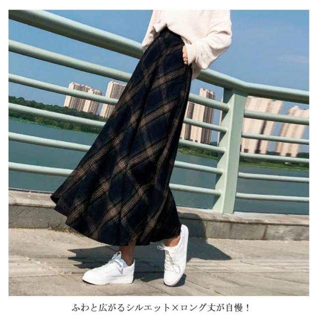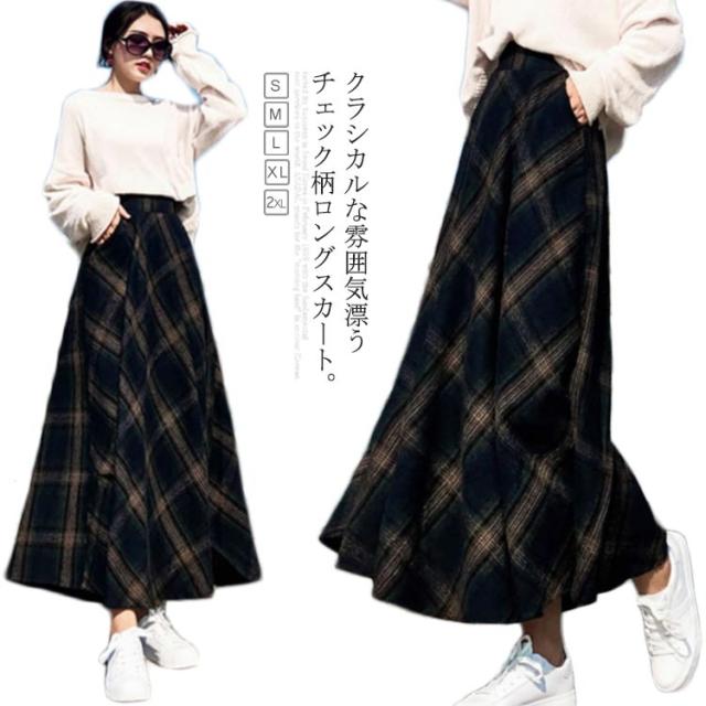 クラシックのある大格子柄で秋冬気分に チェック柄ロングスカート スカート マキシスカート ロングスカート ロングフレアスカート チェック柄 秋冬 フレア 通勤 上品