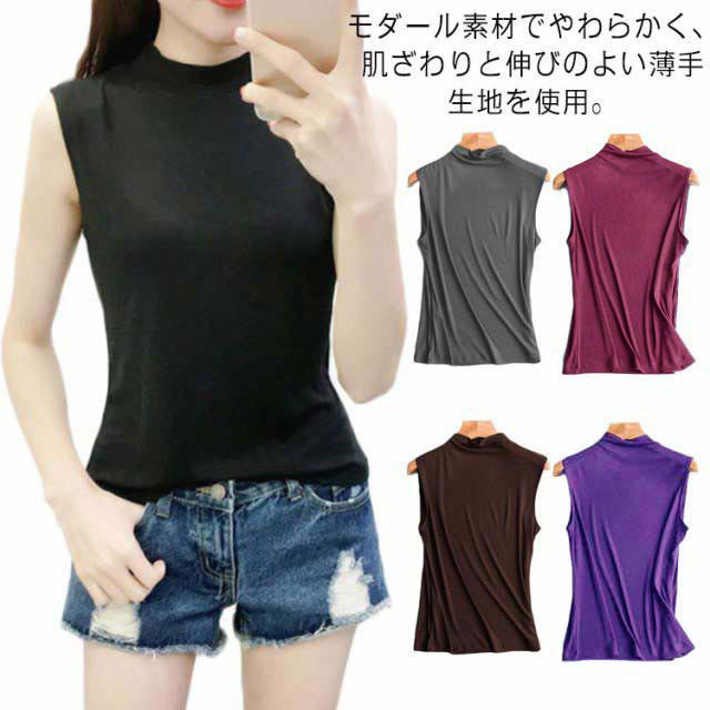 ハイネック ノースリーブtシャツ 夏 ノースリーブ カットソー トップス Tシャツ レディース ノースリーブトップス ハイネックカットソー 薄手 シンプル 無地 おしゃれ 女性 送料無料