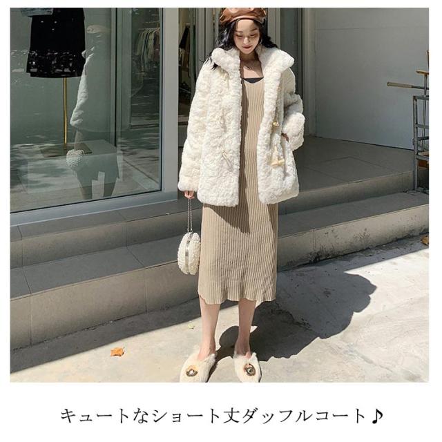 フェイク ファー ダッフルコート ファーコート ショート丈 フェイク ラビットファー コート 毛皮 コート フェイク ファー コート ジャケット レディース エコファー コート フォックスファー ボレロ 結婚式 二次会 パーティー