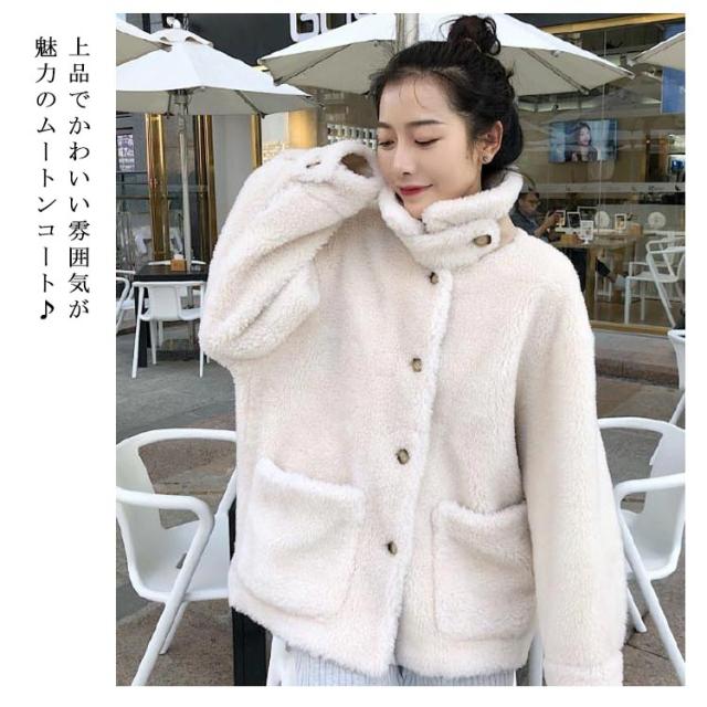 ムートンコート ショート丈 レディース コート もこもこ 毛皮 コート ボア コート ムートン コート ショート丈 ファー コート アウター 防寒 秋冬 冬コート