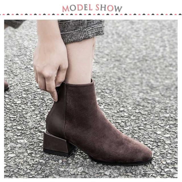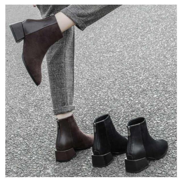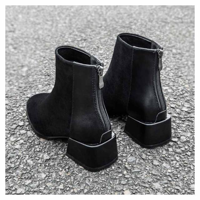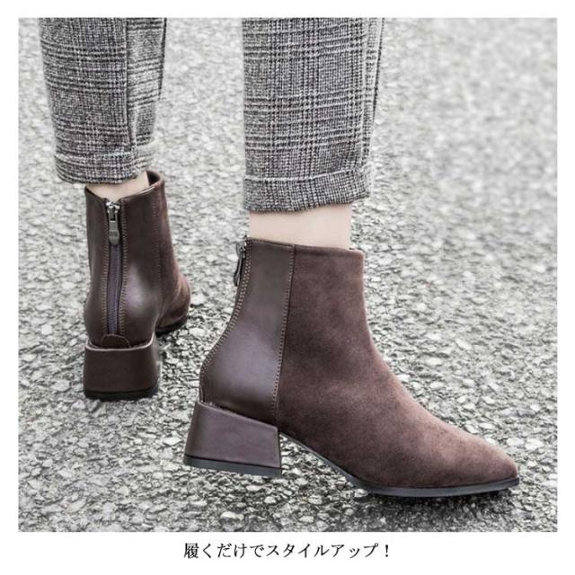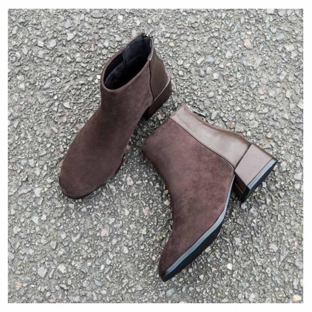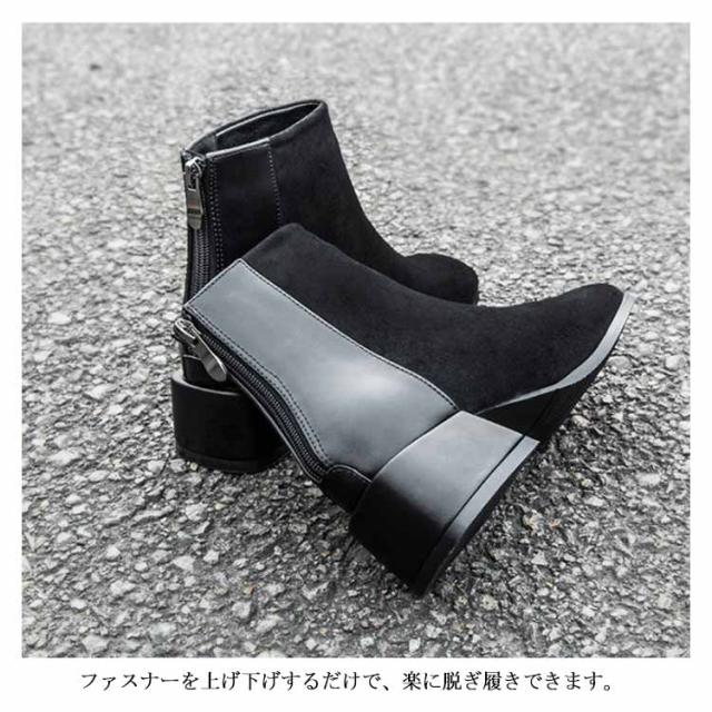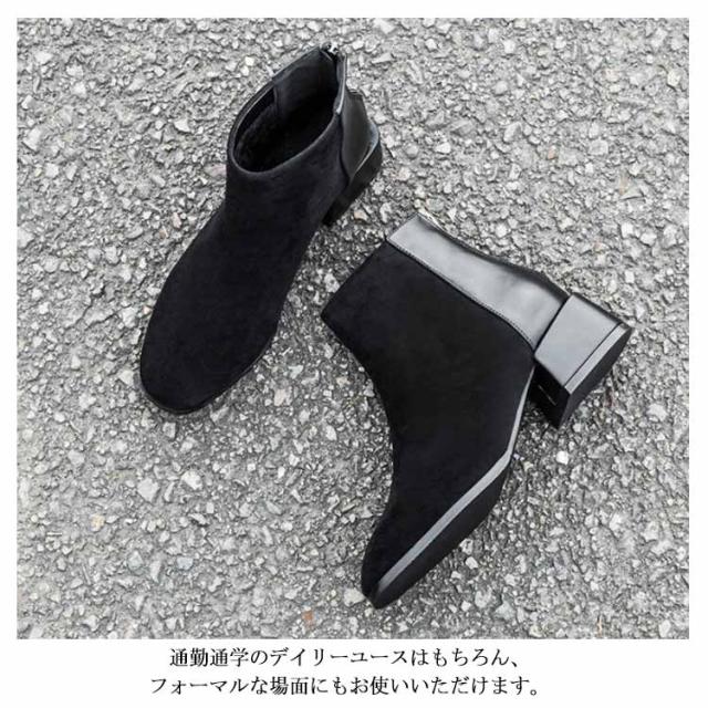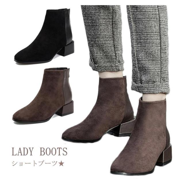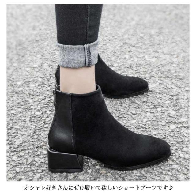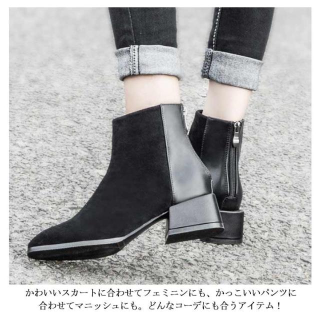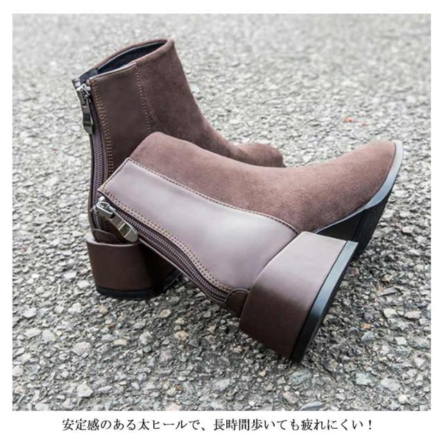 ショートブーツ レディース 太ヒール ブーツ チャンキーヒール ブーツ ファスナー付き チェルシーブーツ アンクルブーツ スエード ブーツ 歩きやすい 痛くない ブーツ
