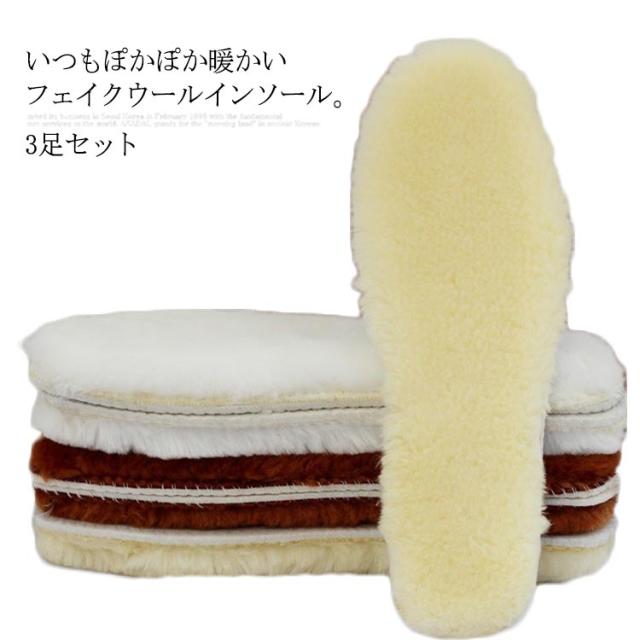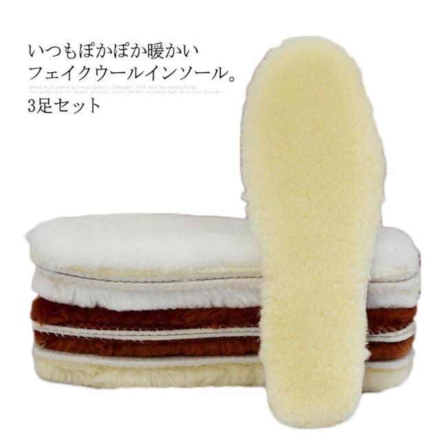 3足セット インソール 羊毛調 ふわふわ 暖かい ウールインソール フェイクウール レディース メンズ もこもこ ムートンインソール 寒さ対策 中敷き ボア インソール 男女兼用 22.5cm〜28cm