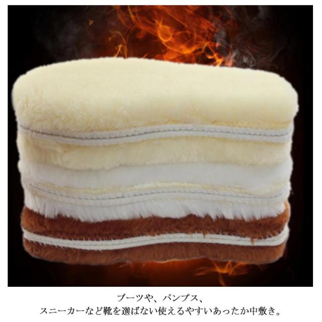 | いつもぽかぽか暖かいフェイクウールインソール。 毛足長く、密度高いフェイクファーで空気を多く含むため、1度暖まった熱を逃がさず保温性バツグン。 ブーツや、パンプス、スニーカーなど靴を選ばない使えるやすいあったか中敷き。 寒い季節にかかせない防寒グッズとして、1度使ったら手放せない。 | |