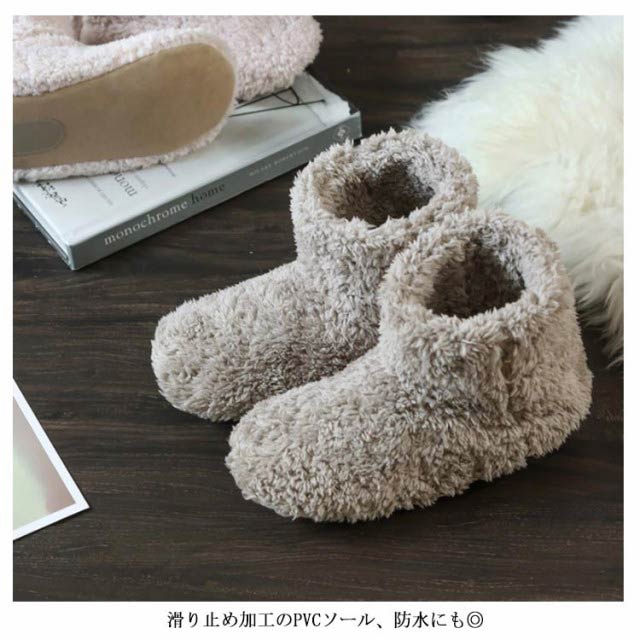 | 極上の温もりに包まれて、もこもこ総ボアルームシューズ。 ふわふわ総ボアで熱気が逃がさず、保温性バツグン。 足首まですっぽり覆われるブーツタイプルームシューズ。 男女兼用のシンプルなデザインなので、夫婦カップルも◎ 滑り止め加工のPVCソール、防水にも◎ パタパタ音がしないのでフローリングにもやさしい♪ 防水なので、リビングではもちろん、台所などでも大活躍。 | |