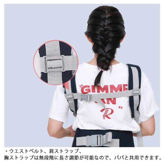 | ・対面抱き 、腰抱き 、おんぶの抱き方ができるベビーキャリア。 ・クロス装着も可能な肩ストラップと、腰サポート付きウエストベルトが赤ちゃんの荷重を分散。長い時間の使用でも快適。 ・クッション入りネック&ヘッドサポートが頭と首を支えます。 ・ウエストベルト、肩ストラップ、胸ストラップは無段階に長さ調節が可能なので、パパと共用できます。 | |