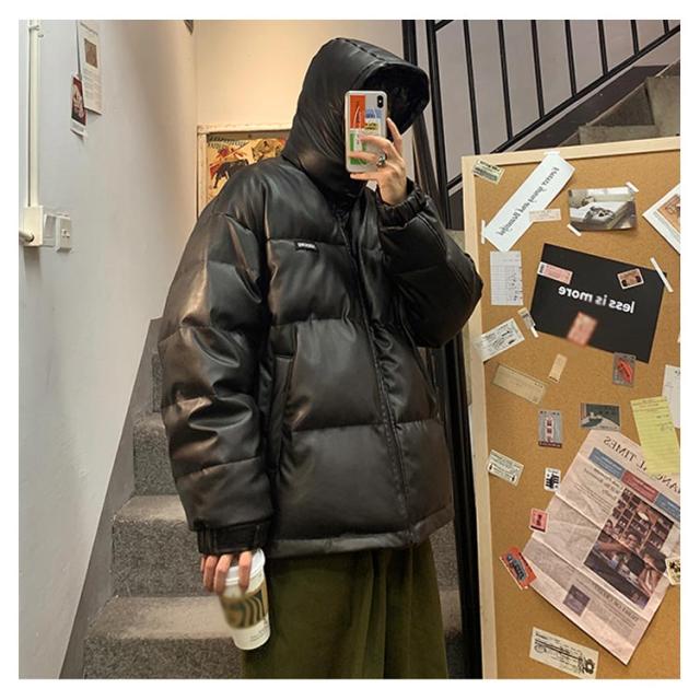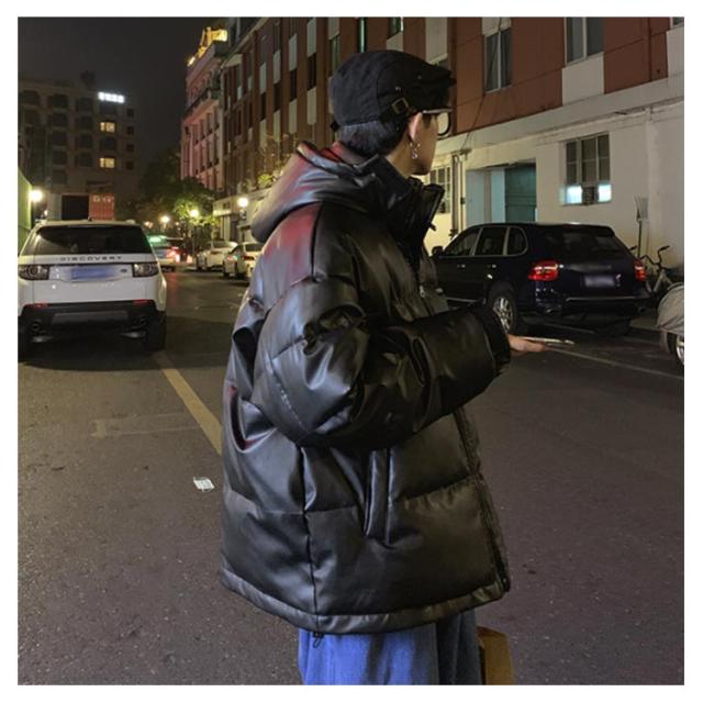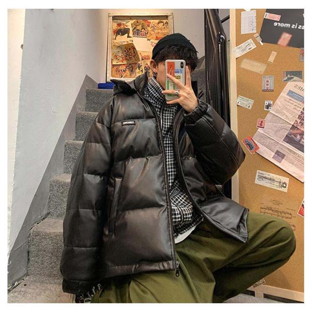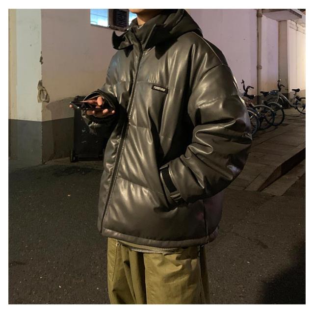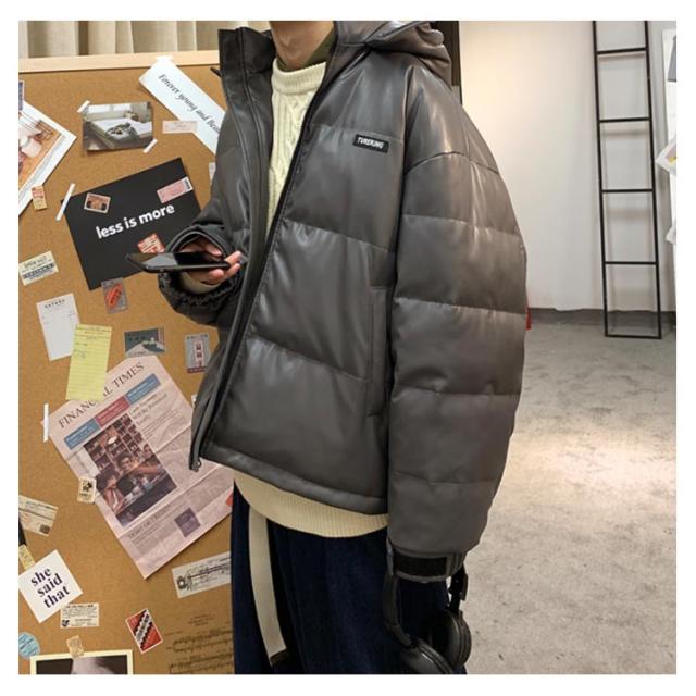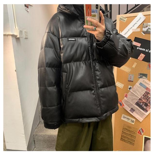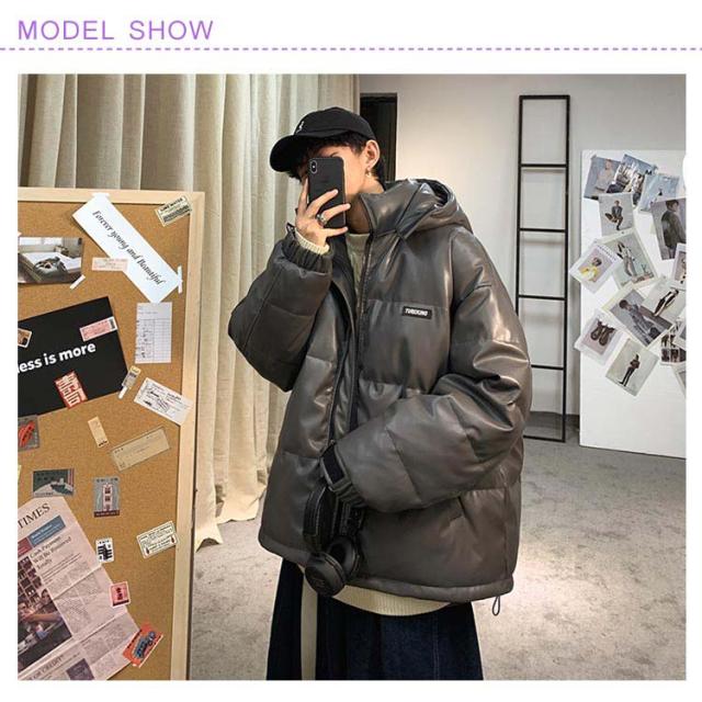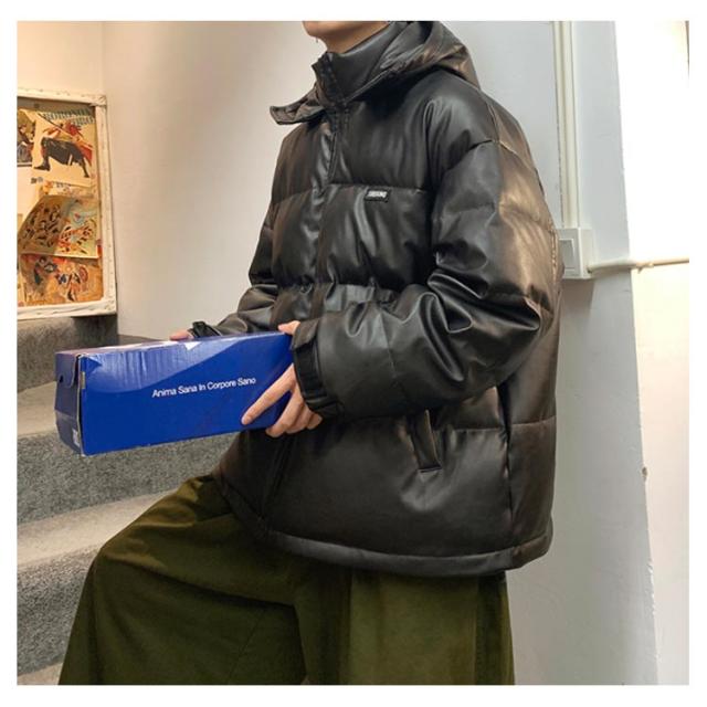 レザー コート ダウンコート 中綿ジャケット メンズ 柔らかい フェイクレザー アウター ビッグサイズ ダウンジャケット フード付き ジャンパー PUレザー 合皮ジャケット 防寒着 冬 冬物 大きいサイズ
