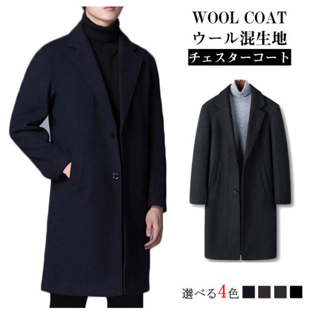 ウール コート チェスターコート ロング丈 メンズ メルトンコート ウール チェスター コート メルトン ロングコート トレンチコート ロング丈 コート 暖かい ビジネス 細身 秋 冬 防寒