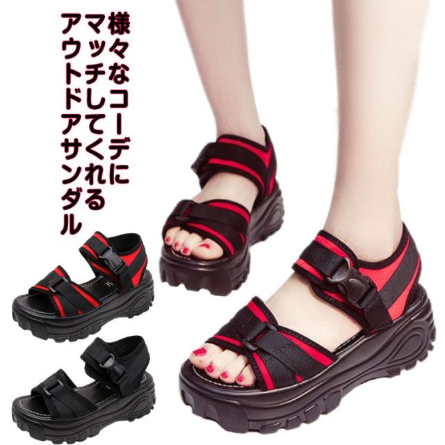 スポーツサンダル 厚底 サンダル レディース ダッドシューズ アウトドアサンダル 厚底サンダル 夏 疲れない ベルクロ サンダル レディース ウェッジソール 美脚 ビーチサンダル 6cm高くなる!