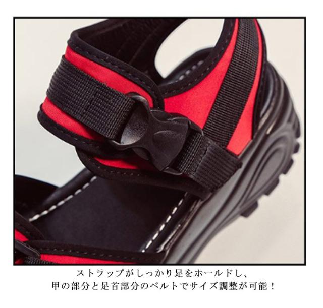 | 様々なコーデにマッチしてくれるアウトドアサンダル ストラップがしっかり足をホールドし、甲の部分と足首部分のベルトでサイズ調整が可能! ほどよい厚底で履きやすさをキープしながら、スタイルアップも叶います♪ アクティブなシーンにも対応できるよう、ソールにはクッション性とグリップ力に優れたシャークソールを採用しており、滑りにくい仕様◎ デニムなどのカジュアル系はもちろん、スカートやワンピースのフェミニンアイテムに合わせればスポーツミックススタイルが完成です! | |