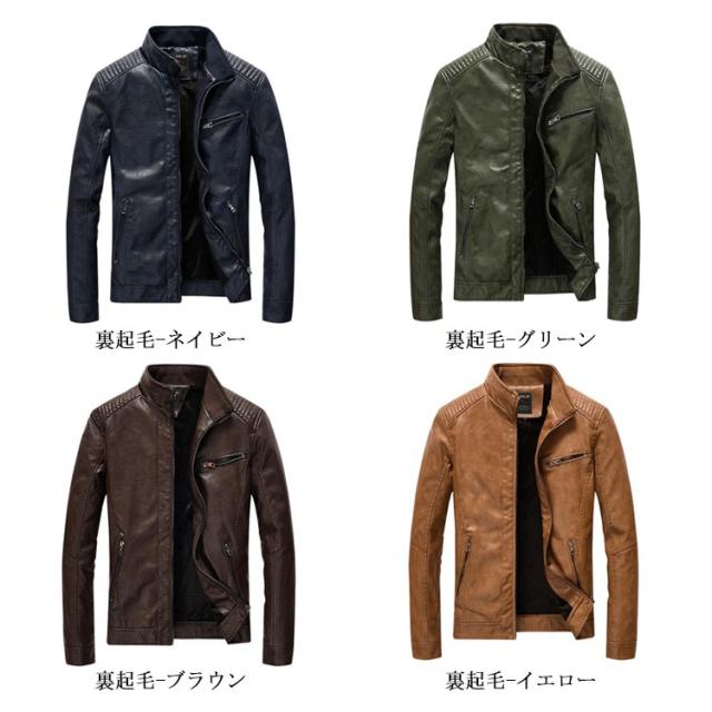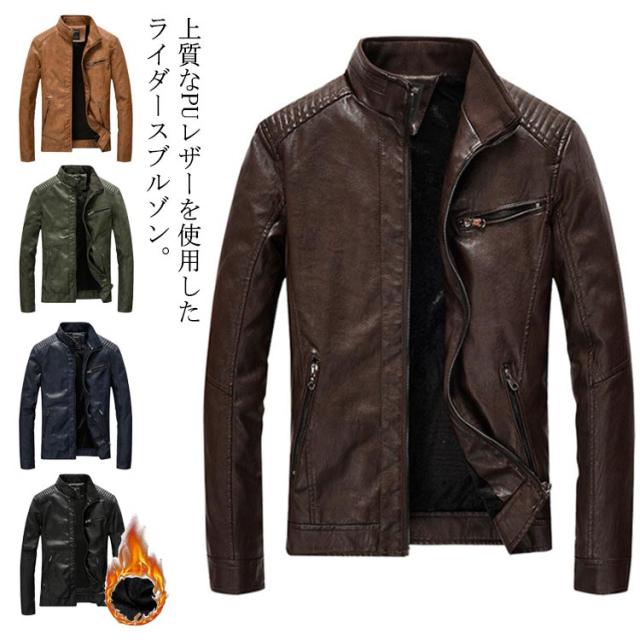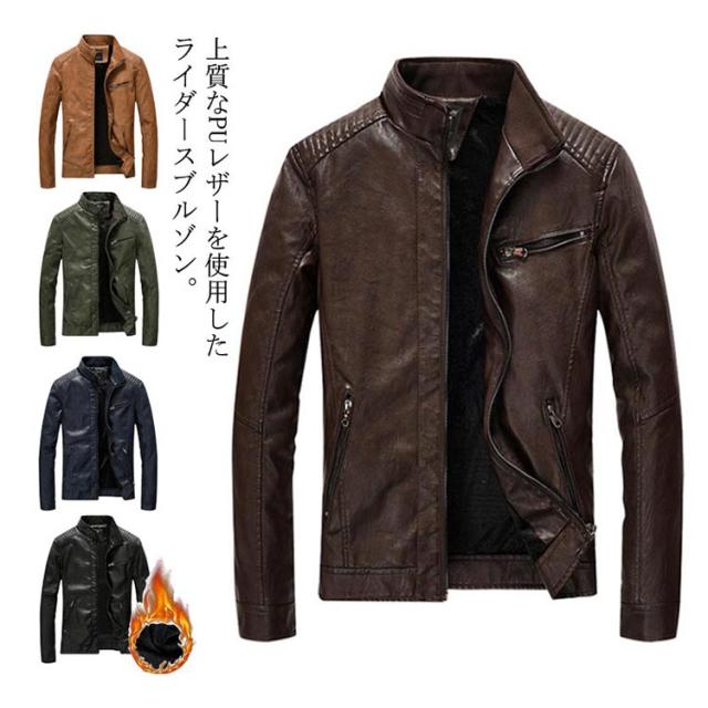 【薄手&厚手】ライダースジャケット メンズ ブルゾン レザージャケット 冬服 裏起毛 革ジャン ジャケット アウター 秋冬物 着痩せ お洒落 大きいサイズ 送料無料