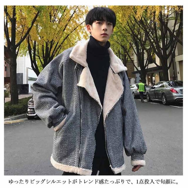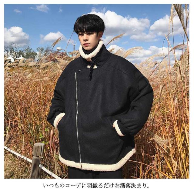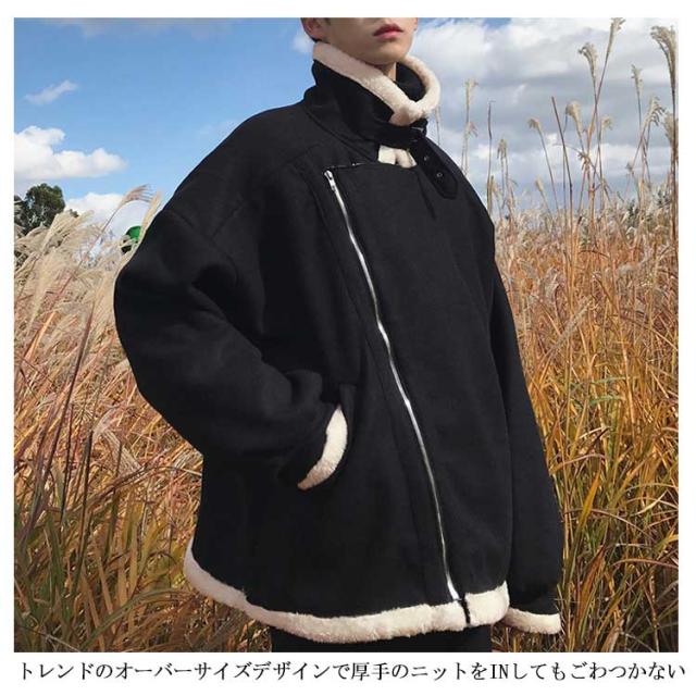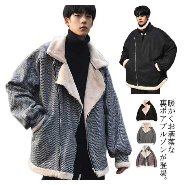 ブルゾン ジャンパー 裏ボア メンズ ライダース オーバーサイズ ビッグシルエット ドロップショルダー ショート丈 ジャケット ボアコート カジュアル お洒落