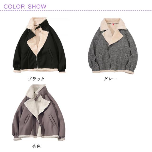 | 暖かくお洒落な裏ボアブルゾンが登場。 ゆったりビッグシルエットがトレンド感たっぷりで、1点投入で旬顔に。 ライダースのようでデザインがシックでカッコイイ。 いつものコーデに羽織るだけお洒落決まり。 | |