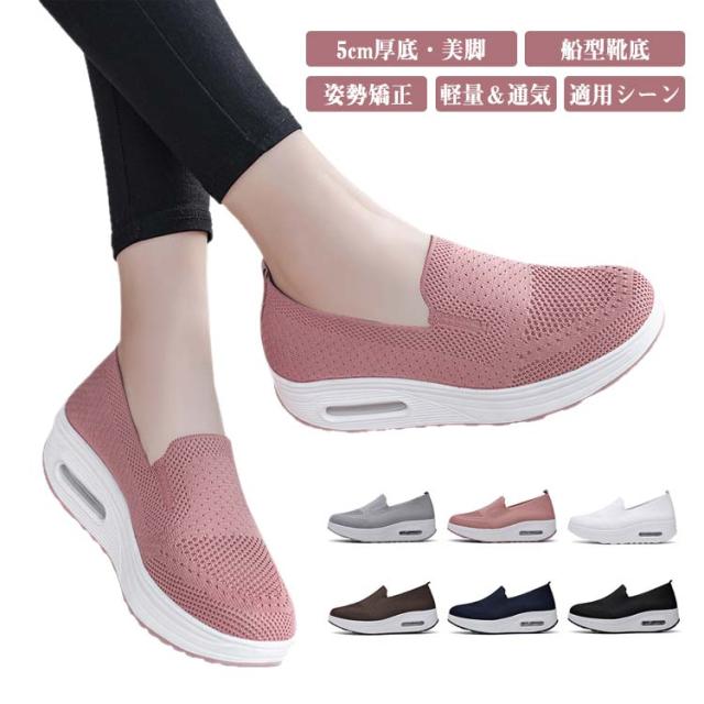 全5色!レディース ダイエットシューズ スリッポン スニーカー 厚底 5cm ナースシューズ 船型底 レディースシューズ ウォーキングシューズ 美脚 軽量 ローファー 姿勢矯正 看護師 作業靴 歩きやすい 疲れない 婦人靴 厚底シューズ
