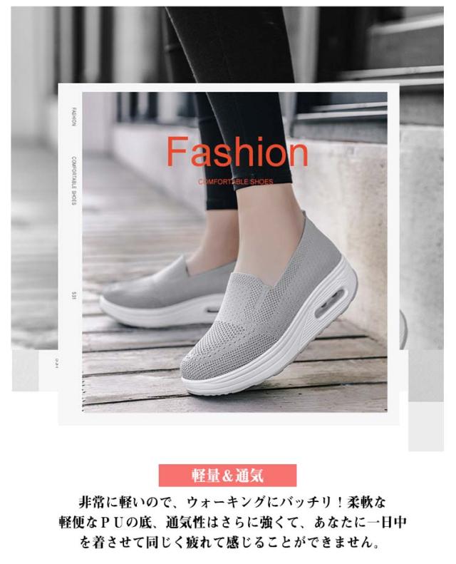 | 【5cm厚底・美脚】5cm厚底のデザインなので、足を長めて見えさせる効果があります。通常より身長が高く見えますので、適度な体格比率をアップし、自信を増強します。 【船型靴底】船型靴底で、身体重心を転移させて、すねを引き締めて、上腿脂肪を燃やして、尻を高めて、腹部を引き締めて、筋肉にさらにきつく型があることを送らせます。 【姿勢矯正】靴底は人体工学工学よりの船型設計、歩くと脂を燃やして、フィットネス強化、美脚効果、PUの靴底はソフトで減振は快適です。歩くだけで全身の筋肉が活性され、基礎代謝の向上、血液の循環がよくなり、カロリー消費量の増加により、ダイエット効果があります。 【軽量&通気】非常に軽いので、ウォーキングにバッチリ!柔軟な軽便なPUの底、通気性はさらに強くて、あなたに一日中を着させて同じく疲れて感じることができません。 【適用シーン】散歩や買い物などで、スーパーやショッピングモールへお出かけの際に、着用されることが最適です。ナースなど立ち時間が長い仕事をする人もおすすめです。ウォーキングはもちろん、普段使いにもバッチリなデザインです。 | |