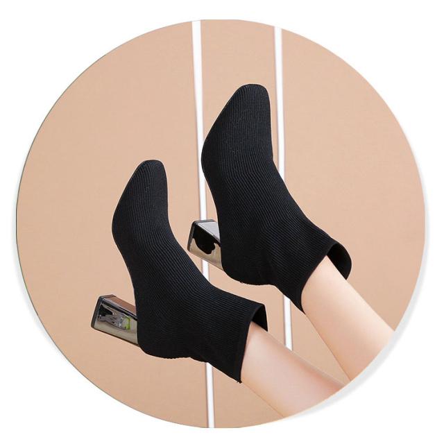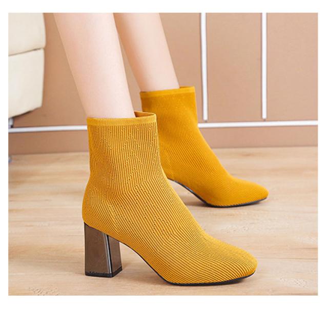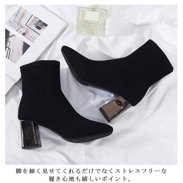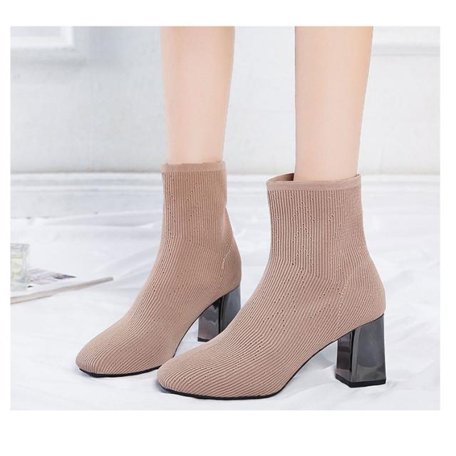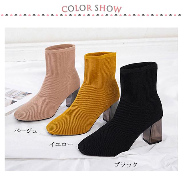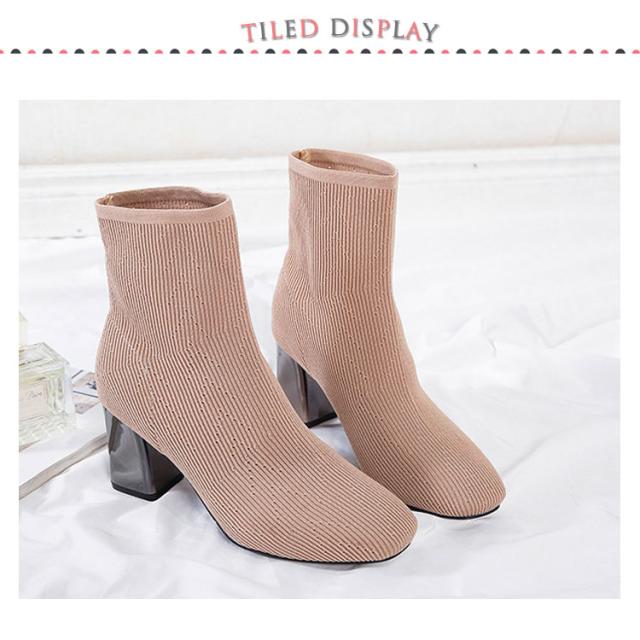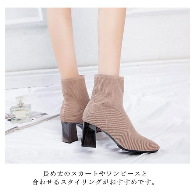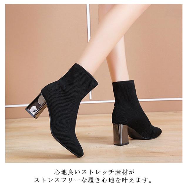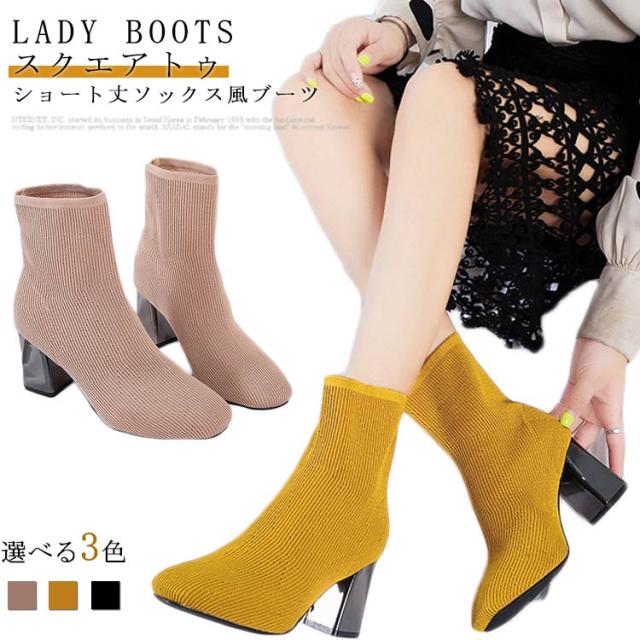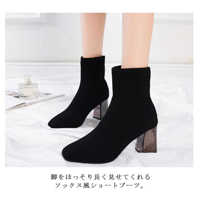 ストレッチブーツ スクエアトゥ ブーツ ショートブーツ ソックス風 ショートブーツ レディース ショート丈ソックス風 ブーツ ストレッチブーツ 太ヒール チャンキーヒール ブーツ 歩きやすい 痛くない ブーツ