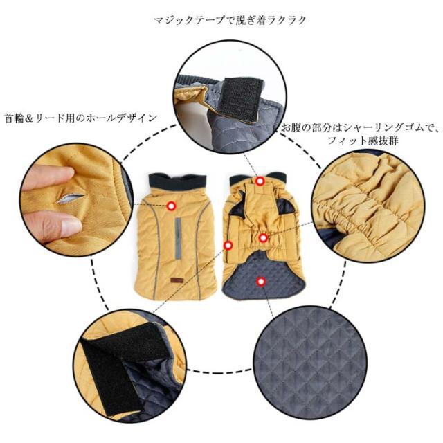 送料無料 ハーネス対応 ペット ウェア ドッグウェア 小型犬 中型犬 キルティングジャケット 撥水 ベスト 犬の服 ペット 服 犬 大型犬 防寒 保温 ペット用品 首輪やハーネス使用可 反射材 夜のお出かけも安心