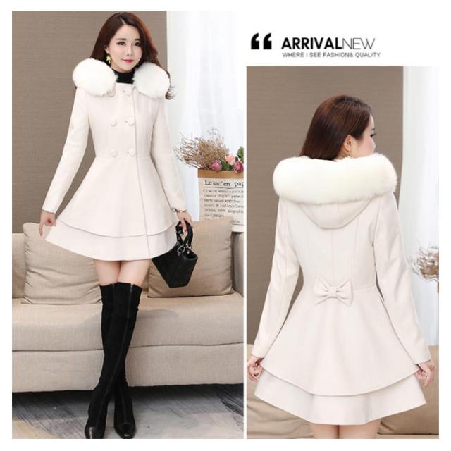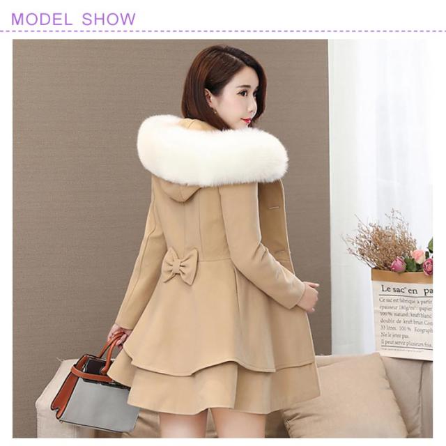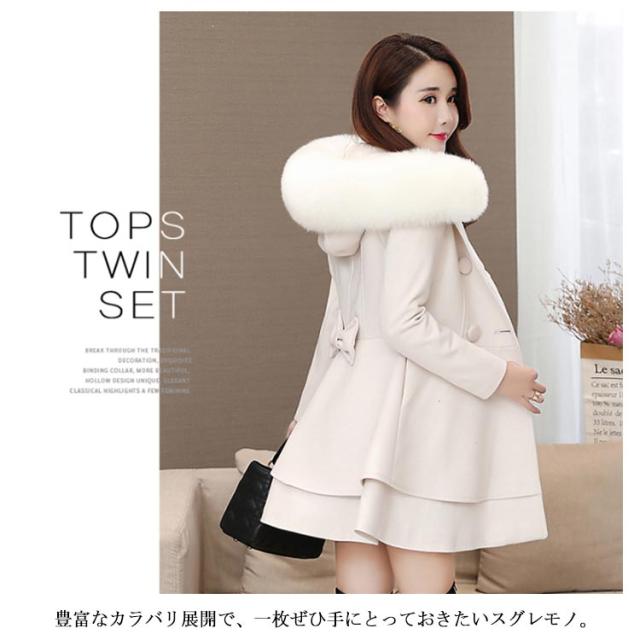 全6色×5サイズ!バックリボン フリル裾 メルトンコート ファー襟 Aラインコート レディース アウター コート フリル リボン 可愛い 冬物