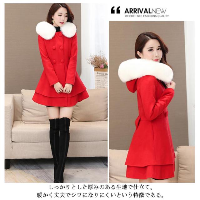 | 全6色×5サイズ!冬の本格防寒・防風アウター新色追加! フードにボリュームのあるフェイクファーを施し、リッチな雰囲気を演出してくれます♪ バックリボン付きがさりげない可愛さをアピール。 またはファー取り外し可能な2Way仕様も魅力。 広がりすぎない2層で仕立てたフリル裾も女性らしいシルエットを演出してくれます。 しっかりとした厚みのある生地で仕立て、暖かく丈夫でシワになりにくいという特徴である。 豊富なカラバリ展開で、一枚ぜひ手にとっておきたいスグレモノ。 | |