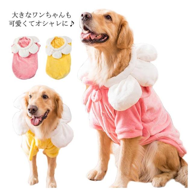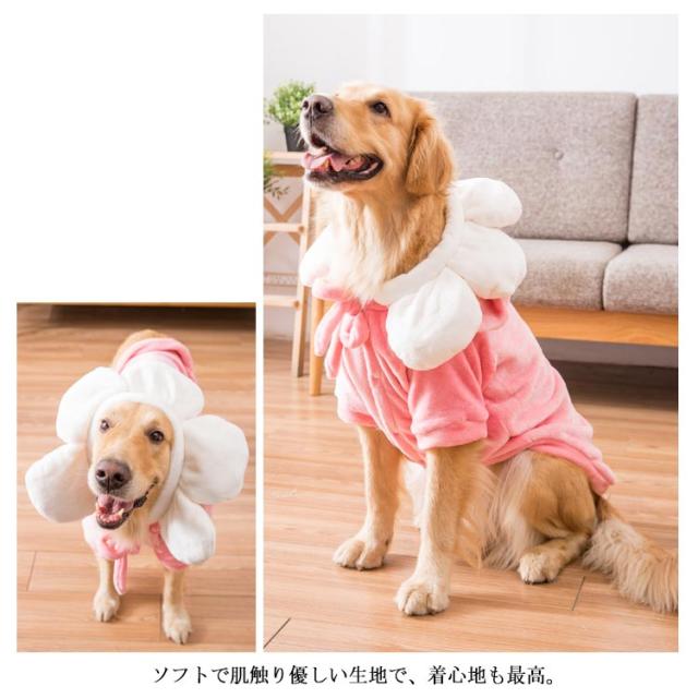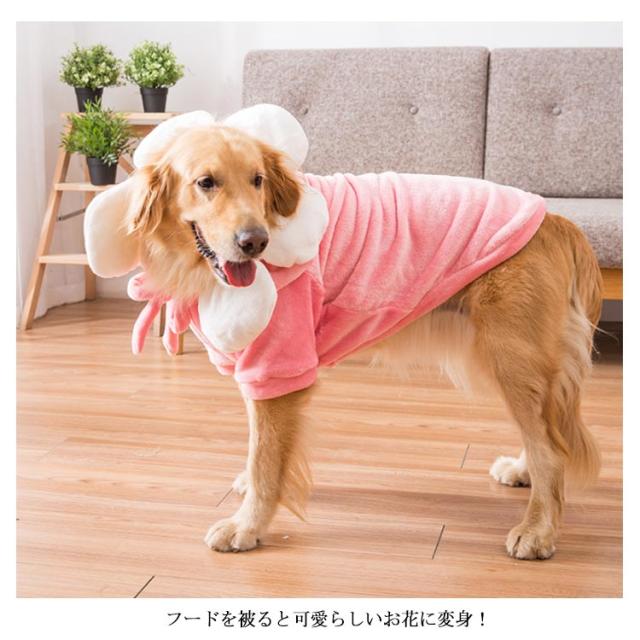 送料無料 大型犬 ウェア 犬 服 中型犬 ペットウェア 犬の洋服 ボア フリース 暖かい フード付き パーカー 記念写真 撮影 イベント 仮装 コスプレ 一輪の花が可愛い ソフト 保温 防寒 秋冬