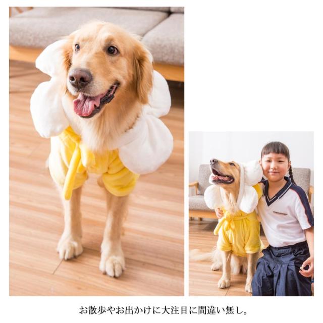 | 大きなワンちゃんも可愛くてオシャレに♪ フードを被ると可愛らしいお花に変身! ソフトで肌触り優しい生地で、着心地も最高。 お散歩やお出かけに大注目に間違い無し。 | |