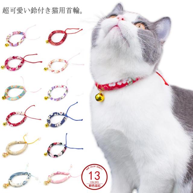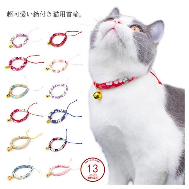 送料無料 選べる13色×2サイズ 猫 首輪 鈴 和柄 小型犬 桜 サクラ ペット用品 猫の首輪 猫用品 犬用品 ネコ イヌ ペットグッズ 犬 首輪 可愛い 手作り サイズ調節可能