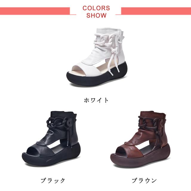 サマーブーツ 通学 レザーブーツ アンクルブーツ ショートブーツ 本革 ブーツサンダル カジュアル 厚底サンダル レディース ミドルブーツ レディース 歩きやすい 痛くない 牛革 厚底ヒール6cm ジッパー 夏靴 カジュアル 通勤 柔らか
