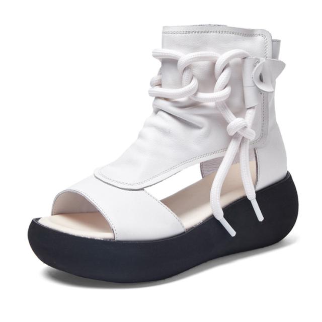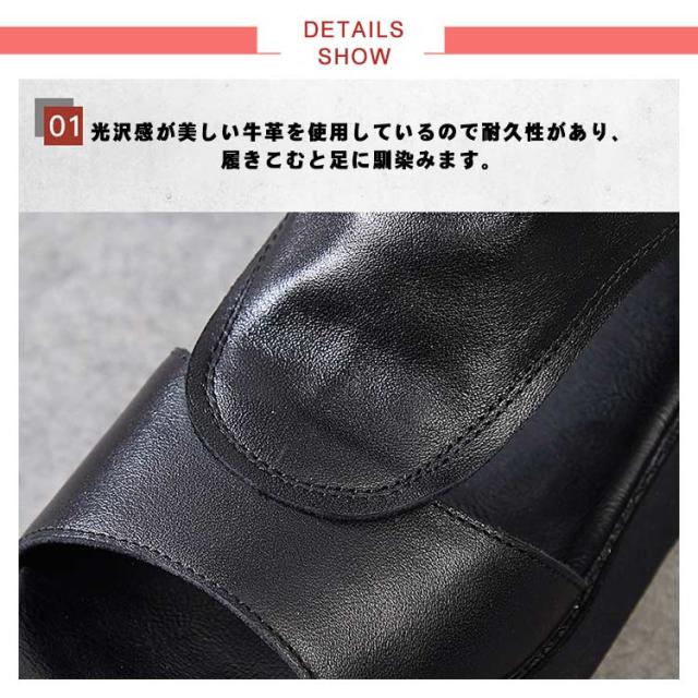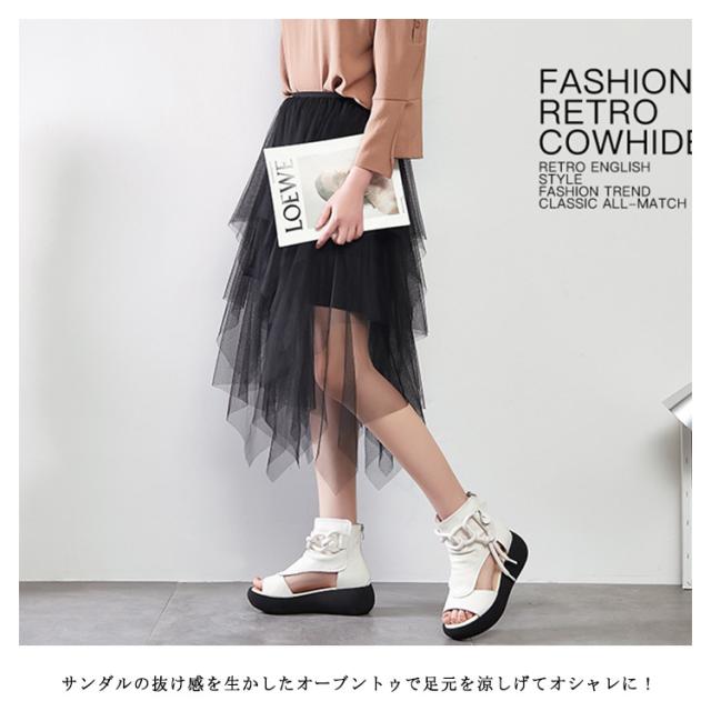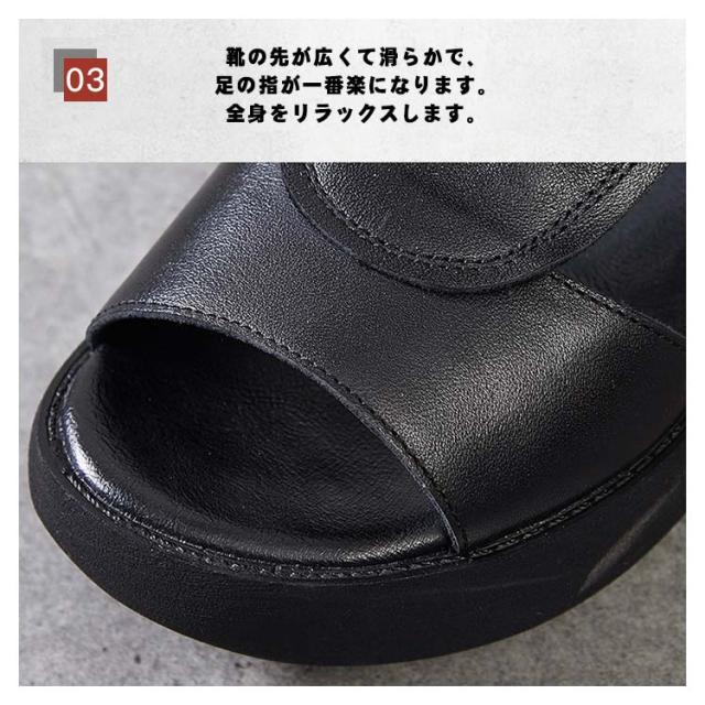 | 全3色!牛革・厚底サンダル。 光沢感が美しい牛革を使用しているので耐久性があり、履きこむと足に馴染みます。 サンダルの抜け感を生かしたオーブントゥで足元を涼しげてオシャレに! インソールが柔らかいので、長時間歩いても疲れない&足が痛くない快適コンフォートサンダルです。 靴の先が広くて滑らかで、足の指が一番楽になります。全身をリラックスします。 バックジッパー付きで楽に脱ぎ履きできる、おしゃれなサマーブーツサンダル。 | |