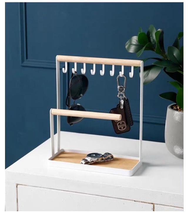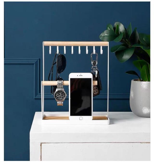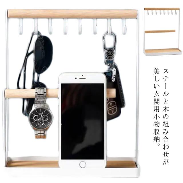 2段 キーフック 鍵かけ スリム スチール キースタンド 玄関用 木製 小物入れ 腕時計置き 北欧 インスタ 高級感 おしゃれ 卓上収納 トレー 鍵置き キー置き スリム メガネ置き アクセサリー収納 インテリア