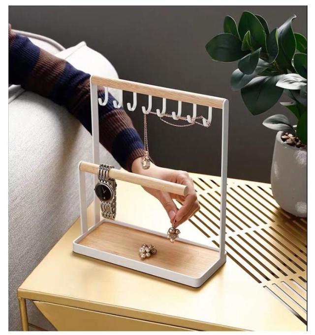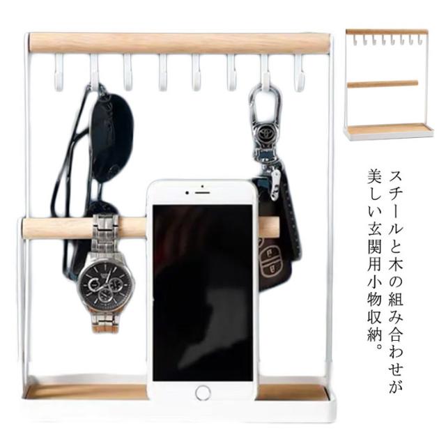 | スチールと木の組み合わせが美しい玄関用小物収納。 鍵、車のスマートキー、腕時計、ブレスレットなどを掛けられる便利な収納スタンドです。 下のトレーにはメガネや指輪などが収納でき、オシャレでありながら利便性も良く使いやすい。 底面のトレーにしっかりフチが付いているのも嬉しいポイント。 シンプルでナチュラルなデザインが掛ける物を引き立てます。 インテリアとしても主張し過ぎず、スタイリッシュなデザイン。 | |