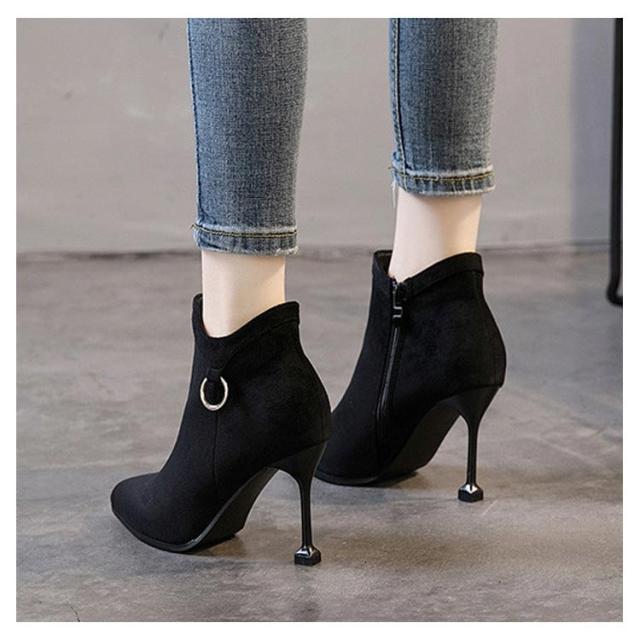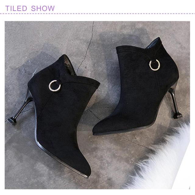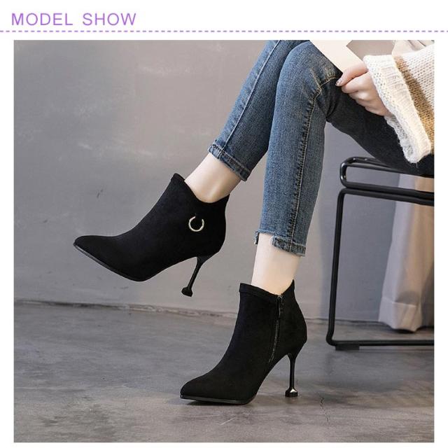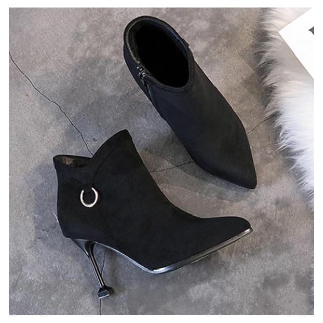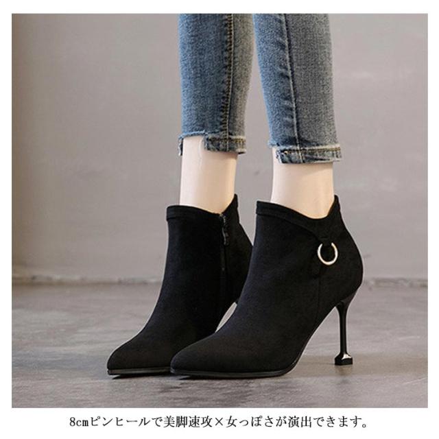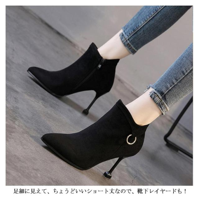 8cmピンヒールで美脚速攻×女っぽい。サイドジップブーツ ピンヒール ショートブーツ ブーティー ブーティ アンクル ブーツ ハイヒール 8cm ヒール 美脚 秋冬