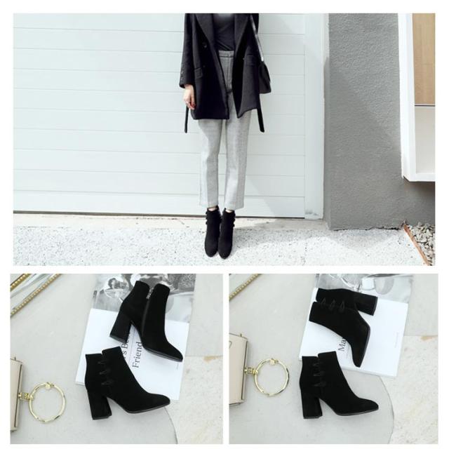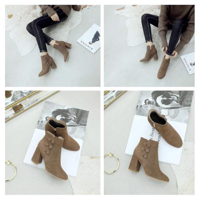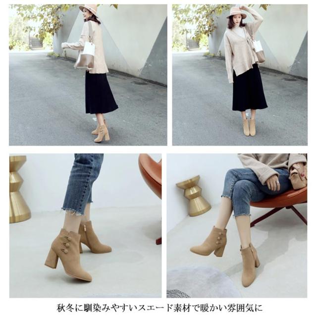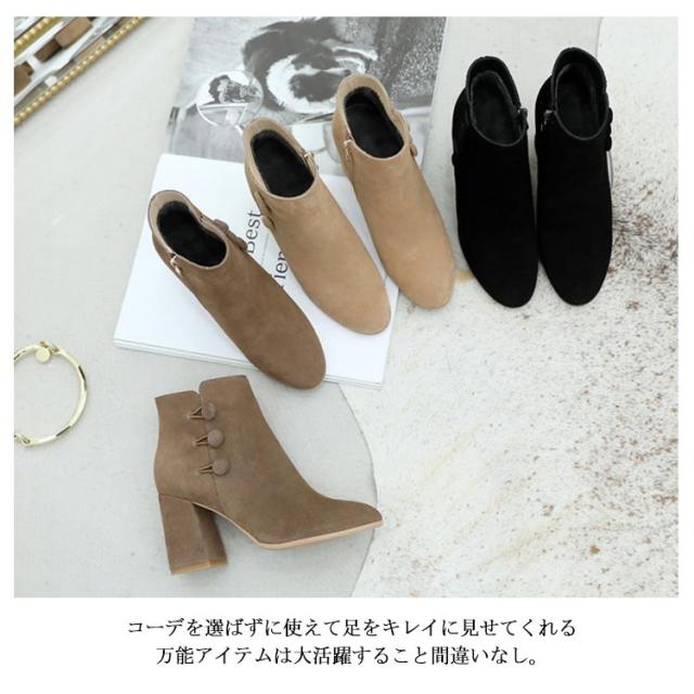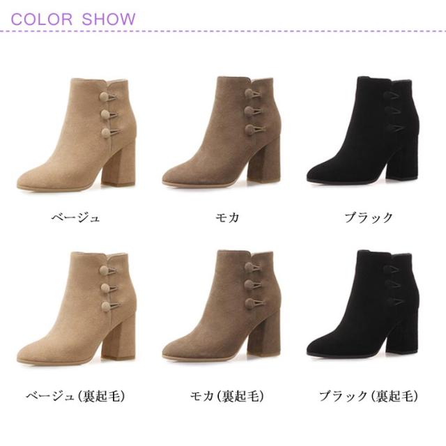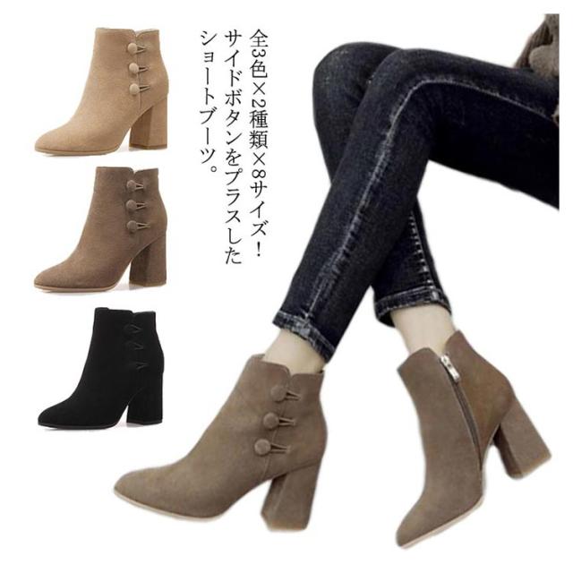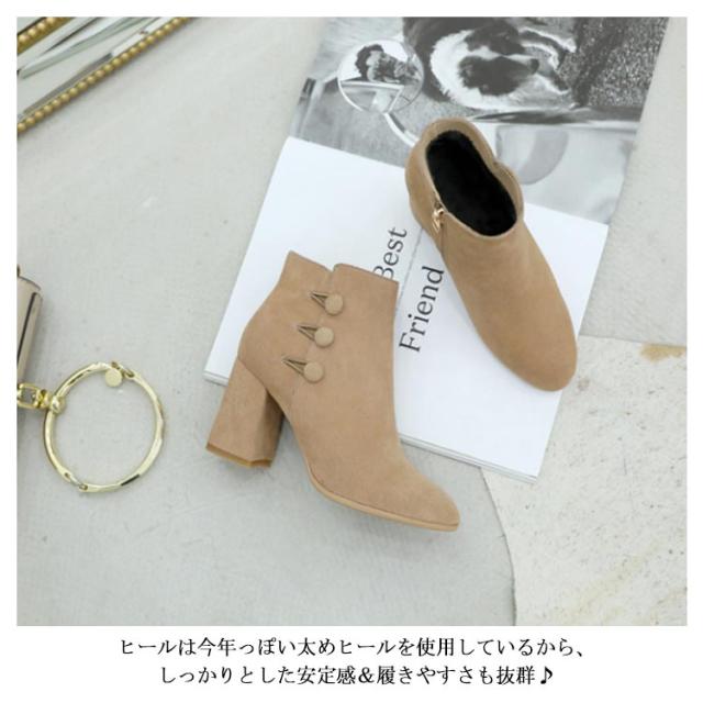 | 全3色×2種類×8サイズ!サイドボタンをプラスしたショートブーツ。 秋冬に馴染みやすいスエード素材で暖かい雰囲気に ヒールは今年っぽい太めヒールを使用しているから、しっかりとした安定感&履きやすさも抜群♪ 内側にはファスナー付きで脱ぎ履きが楽チン。足裏にはふかふかのクッションを入れ、足当たりがソフト。 アウトソールは滑りにくい底仕様で細部までとことんこだわりました。 コーデを選ばずに使えて足をキレイに見せてくれる万能アイテムは大活躍すること間違いなし。 秋冬はもちろん、春ブーツとしても履ける、年中ヘビロテ | |