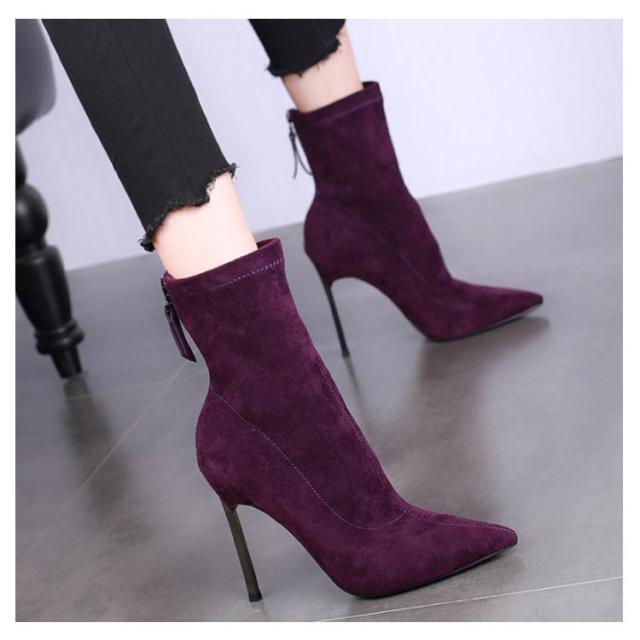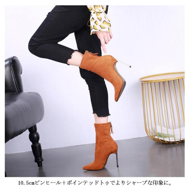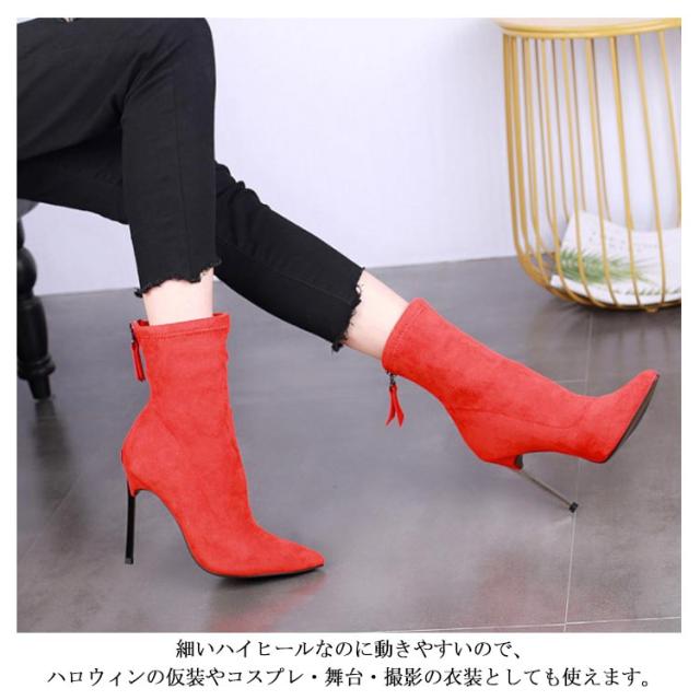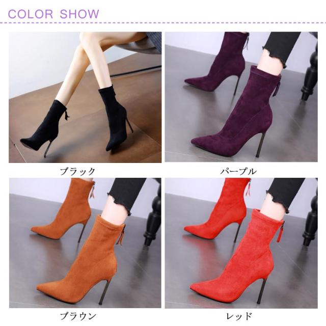 全4色×8サイズ!ミドル丈ソックスブーツ ショートブーツ ピンヒール ミドルブーツ ストレッチブーツ ソックスブーツ レディース ブーツ ハイヒール 美脚 伸縮性 秋冬