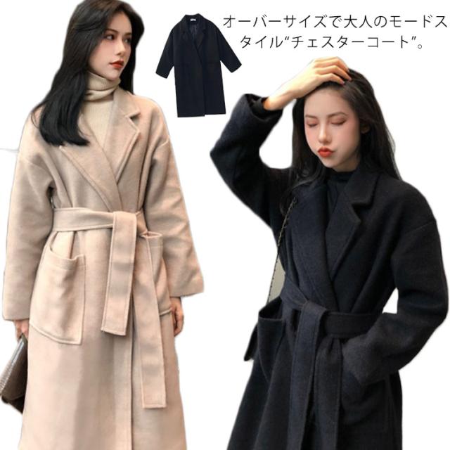 チェスターコート レディース ロング丈 ロングコート アウター オーバーサイズ スリット入り 着痩せ 秋冬物 あったか 厚手 大人女子 お洒落 体型カバー
