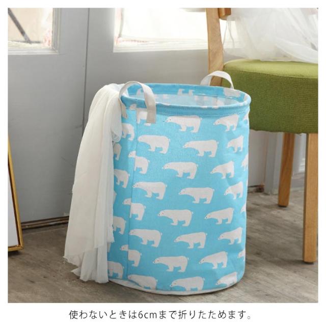| 洗濯かごや収納ボックスやおもちゃ入れ等に最適! 大容量だから沢山入れてスッキリ収納! 高さ43cm×直径37.5cmの大容量サイズ。 使わないときは6cmまで折りたためます。 安心安全の布仕様で破損する心配がありません。 両手で持てるように持ち手がついて、持ち運びが便利。 内側は撥水加工になっているので、濡れているものでも気にせずに入れれます。 汚れた場合も水でかんたんに拭き取れます。 | |