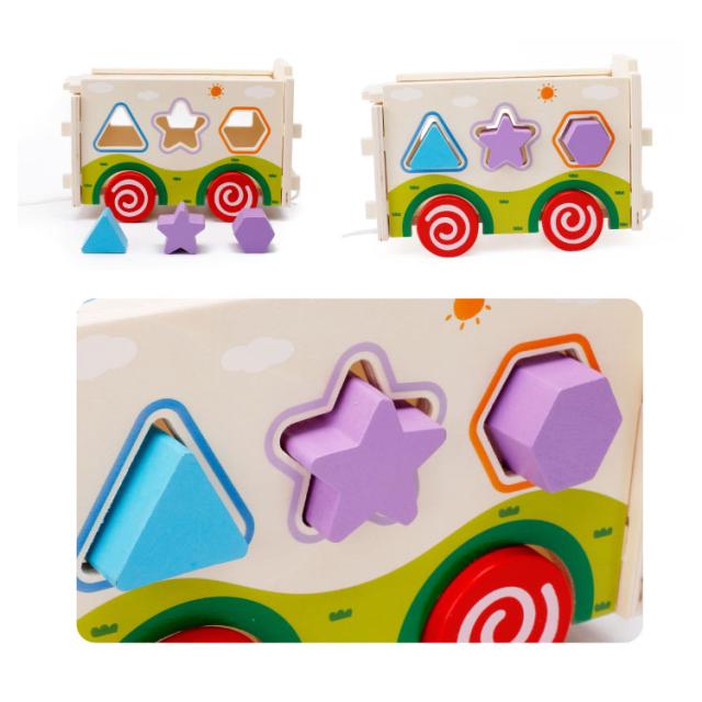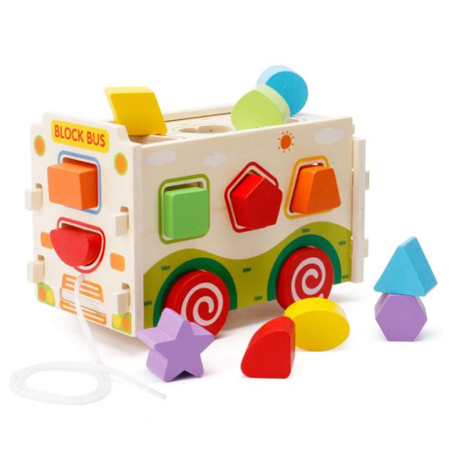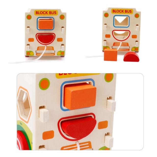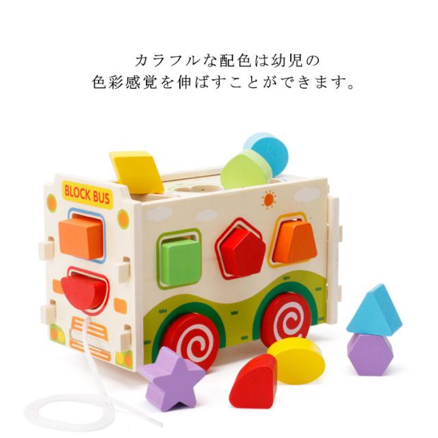 | 知育に最適な手と頭を使う木のおもちゃ♪ カラフルなブロックと同じ形の穴を探して箱に入れましょう。 形の認識力や指先の器用さを養うことができます。 | |